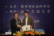 日前,教育部高校哲学社会科学学报第二批名栏建设签约仪式在北京举行,德赢副校长高丹盈与学报哲社版负责同志出席签约仪式。高丹盈副校长代表学校与教育部社科司司长杨光共同签署了《教育部高校哲学社会科学学报名栏建设协议书》。