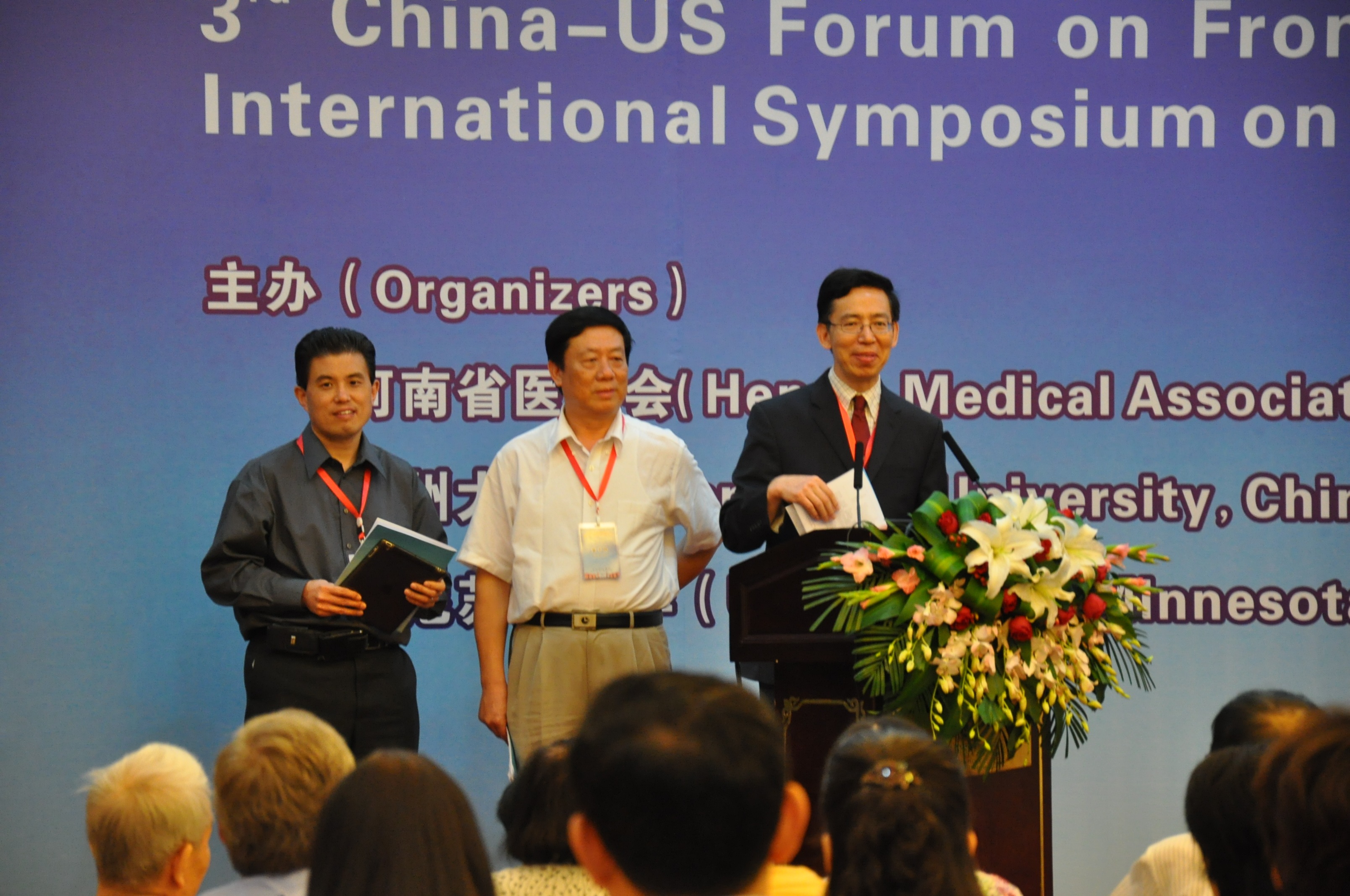2011年8月21-23日,为促进中美两国的学术交流与合作,进一步推动肿瘤防治和干细胞与再生医学的国际间合作研究,德赢AC米兰中国官方网站与美国明尼苏达大学在郑州市黄河迎宾馆联合成功主办了“第三届中美癌症研究前沿论坛和第一届干细胞与再生医学国际研讨会”。大会中方主席德赢AC米兰中国官方网站副校长、第一附属医院院长阚全程教授,德赢AC米兰中国官方网站基础医学院院长董子明教授,美方主席美国Minnesota大学Hormel研究所所长Zigang Dong教授,美国Columbia大学牙医学院副院长、干细胞生物学与颅面部再生医学研究中心主任Jeremy Mao教授共同主持了大会开幕式。河南省卫生厅副厅长、河南省医学会副会长秦省女士到会祝贺并发表了热情洋溢的讲话,德赢AC米兰中国官方网站副校长高丹盈教授到会致欢迎词并设宴招待海内外重要来宾。