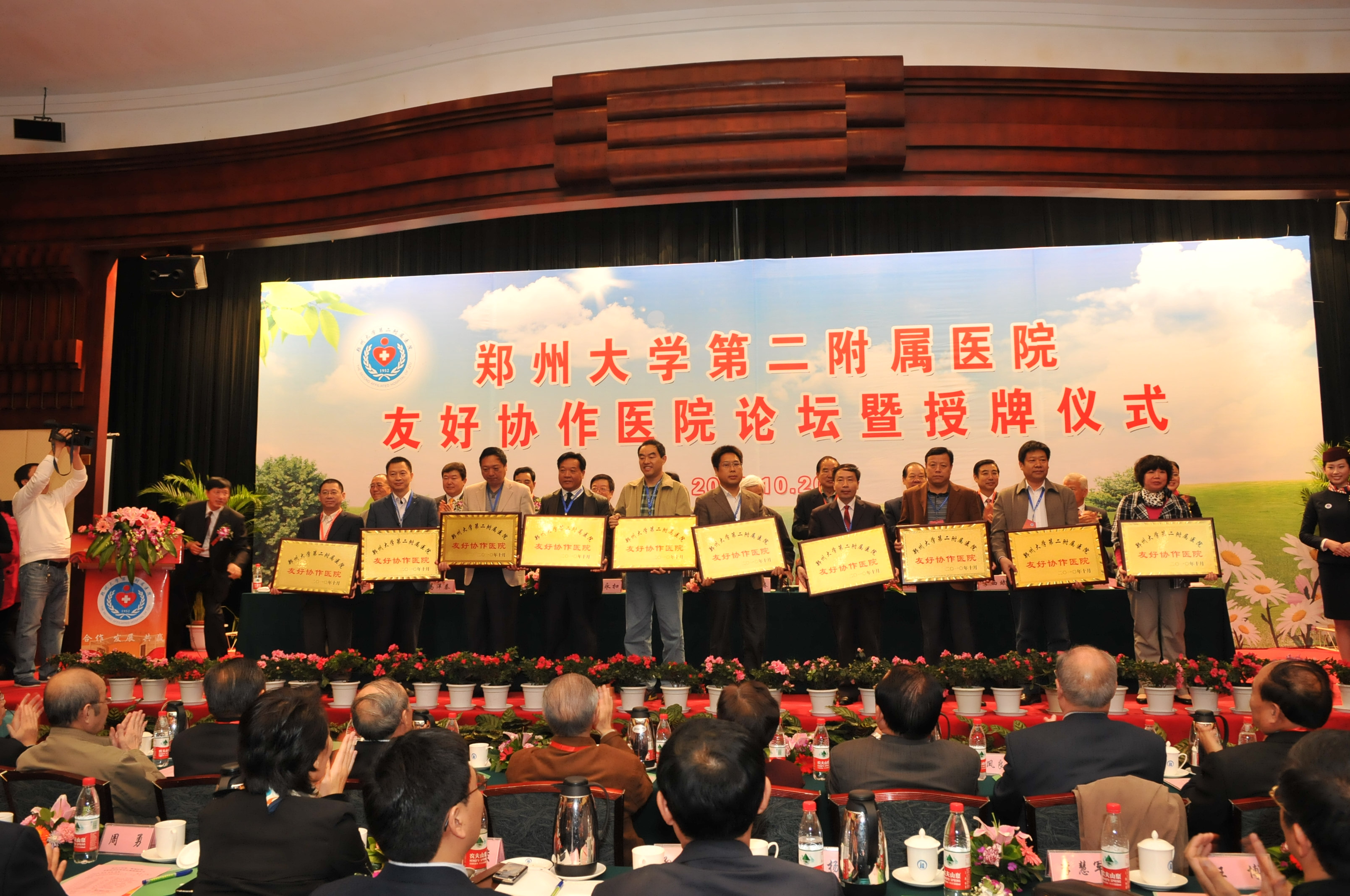 由德赢第二附属医院牵头主办的友好协作医院论坛暨授牌仪式10月20日上午在郑州召开,包括北京航天总医院在内的国内116家省、市及县等各级医院的400多位专家学者参加了论坛暨授牌仪式。原卫生部党组副书记、副部长孙隆椿,河南省政协副主席、河南省工商联主席梁静,第十届河南省人大常委会副主任、河南省慈善总会会长、原河南省副省长李志斌,原河南省人大常委会秘书长杜耀敏,香港中医药管理委员会主席范佐浩,国际狮子会亲善大使、香港中央狮子会会长林瑞隆,国际著名眼科专家、世界眼科基金会中国分会会长张效房,河南省慈善总会副会长、河南省孝文化促进会会长、原河南省民政厅长鲁献启,河南省信息工业厅党组书记吕清海,河南省卫生厅副厅长夏祖昌,德赢AC米兰中国官方网站党委书记郑永扣等领导出席了会议。