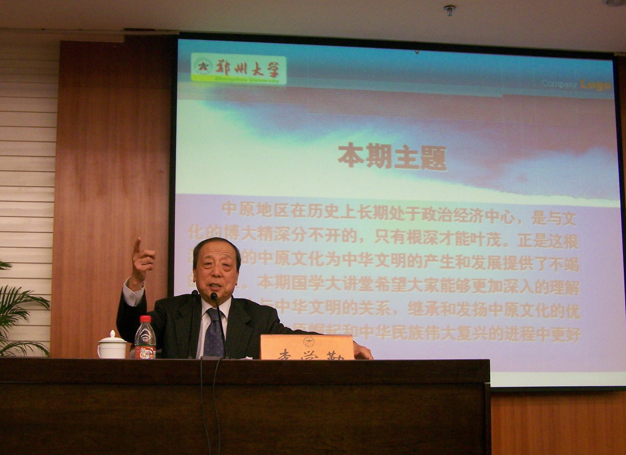 4月12日晚,现任清华大学教授、文科高等研究中心主任、国际汉学研究所所长,中国社会科学院古代文明研究中心主任、“夏商周断代工程”专家组组长、首席科学家,国务院学位委员会历史评议组组长、国际欧亚科学院院士的著名学者李学勤老先生应德赢之邀,担任德赢“国学大讲堂”第五讲的主讲人,为师生做了题为“中华文明与中原文化”的精彩演讲。当晚,容纳500人行政管理中心大楼第一大报告厅内座无虚席,靠墙处和两边过道上都挤满了人。大家被他的渊博学识和严谨风范所打动,始终保持着高昂的情绪,随着他的演讲时时爆发出热烈的掌声。