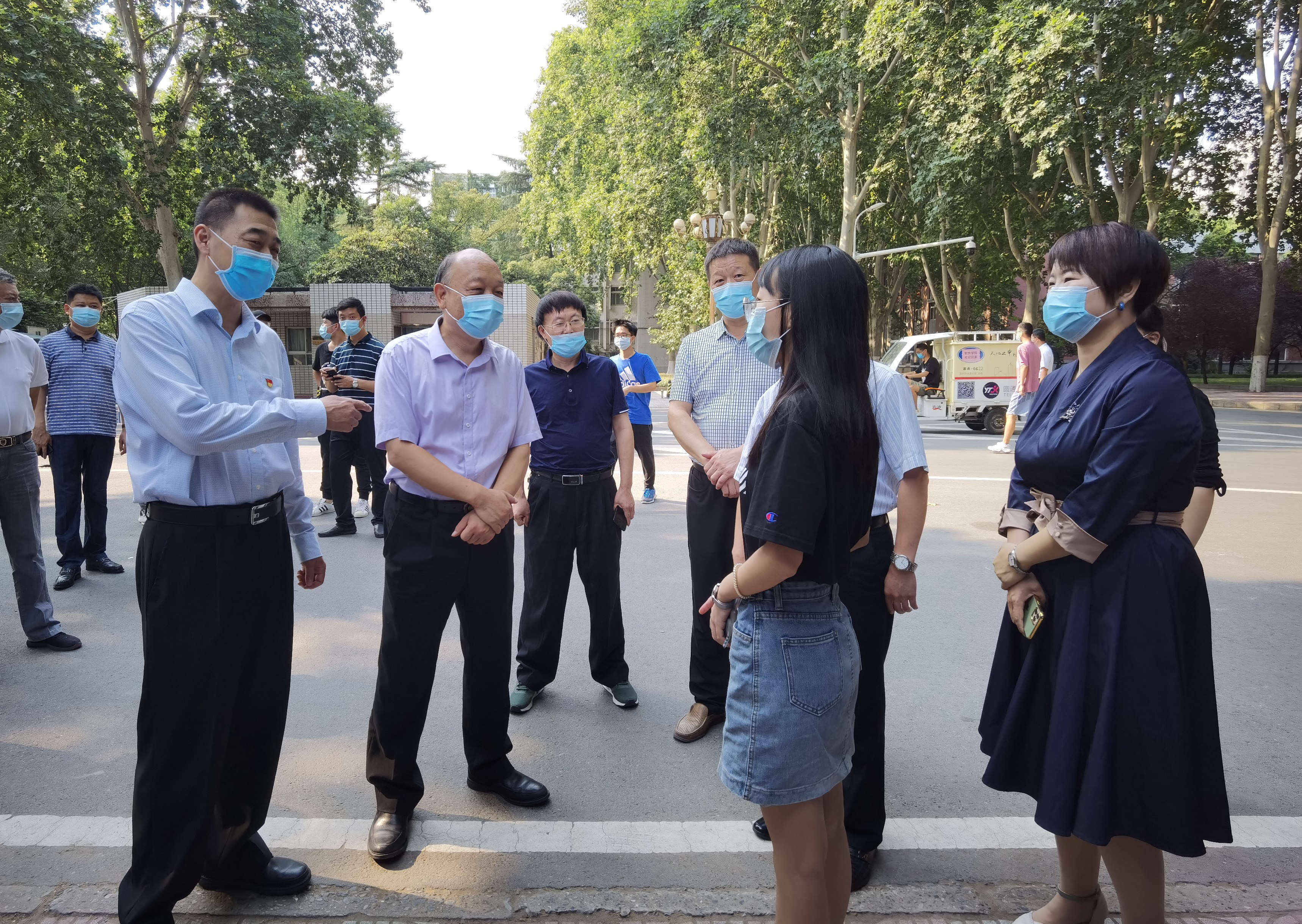 当天上午,校领导屈凌波、李兴成、谷振清、许东升、关绍康、吴宏阳、董子钢分别到南校区、北校区、医学院校区和火车站,检查指导返校复学工作。在检查过程中,校领导详细了解各项工作的准备和开展情况,与返校学生亲切交流,并慰问了工作人员和志愿者。