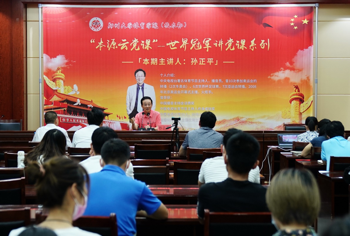 9月1日上午,体育学院(校本部)“本源云党课”第二讲开讲,由中央电视台著名体育节目主持人孙正平主讲。校党委常委、副校长吴宏阳,2004年雅典奥运会50米步枪金牌获得者贾占波,河南卫视武林风制片人于雷出席,体育学院(校本部)领导班子全体成员及2019级研究生在主会场参加,教工党员、学生党员、入党积极分子300余人在线参加。