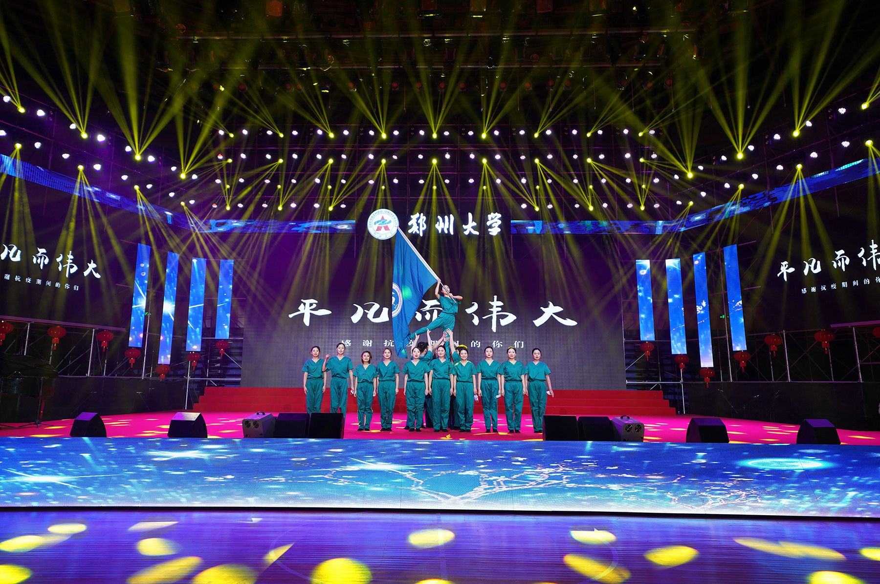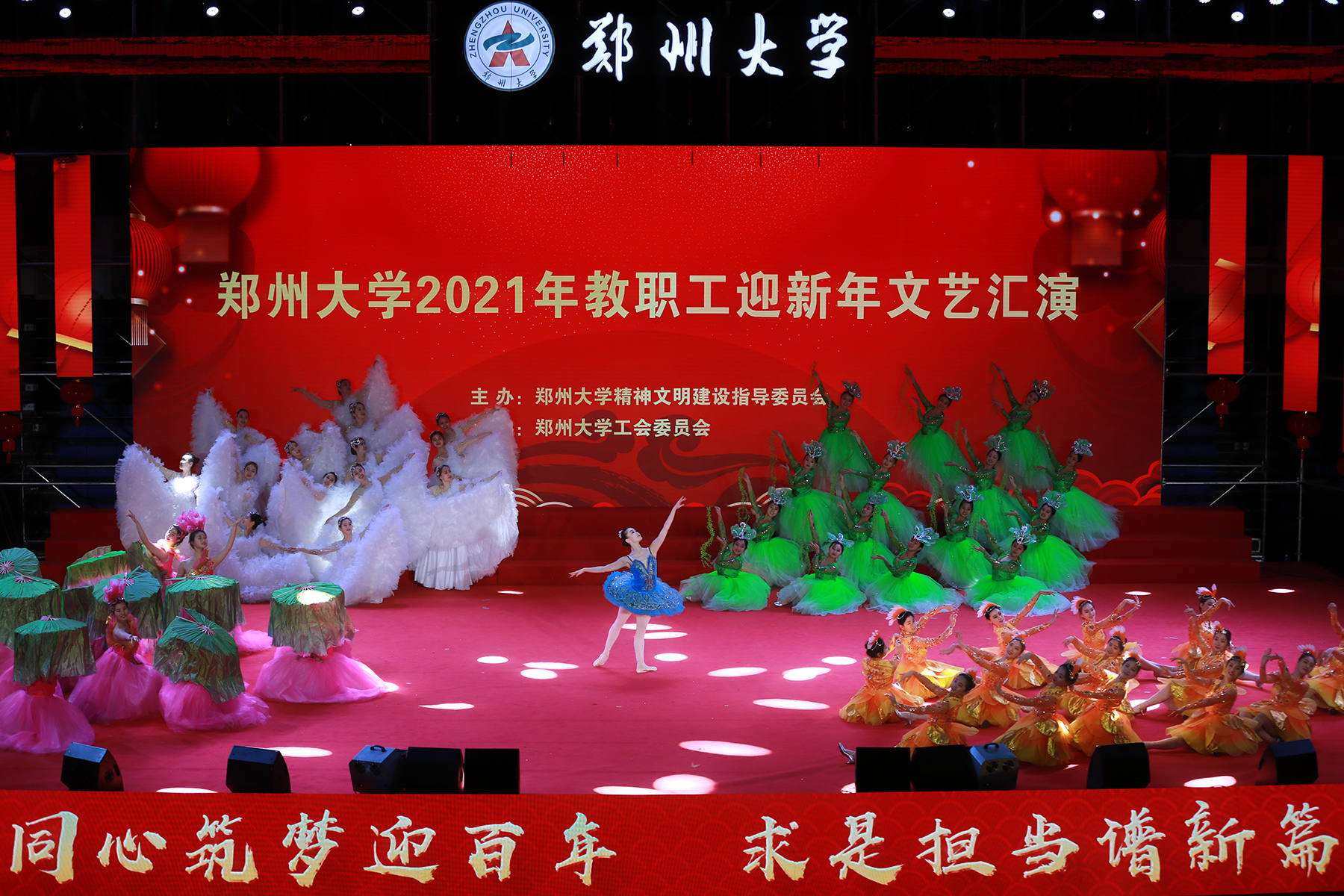 2020年12月31日,由学校精神文明建设指导委员会主办、工会委员会承办的2021年德赢AC米兰中国官方网站教职工庆元旦迎新年文艺汇演在主校区中心体育馆举行。音乐学院舞蹈《四季》拉开晚会序幕,美轮美奂的舞姿演绎出郑大的春夏秋冬;第一附属医院的舞蹈情景剧《生死不离》,生动再现了战疫期间“最美逆行者”为全国人民托起生命方舟的感人故事,现场观众无不感动落泪;国际教育学院带来朗诵《等你归来》,来自世界各地的留学生与郑大师生共克时艰,谱写出一曲人类命运共同体的生动赞歌;第二附属医院的舞蹈《守护》震撼人心,展现了中华民族亿万儿女守望相助、同心战疫的磅礴力量;河南豫剧院副院长贾文龙演唱的著名豫剧片段《吃亏歌》真挚朴实,唱出了广大党员干部人民至上的初心本色;第五附属医院的古典团扇舞《彩云追月》,为嫦娥五号揽月归来喝彩,点燃了为中国航空作出贡献、服务黄河国家战略的郑大人矢志报国、逐梦太空的科研理想;附属中学教师带来一场《盛世京韵》旗袍秀,将国风国韵之美展现得淋漓尽致,以美立德、以美育人;材料科学与工程学院歌伴舞《风光二十年》,讴歌了学校合校20年来的巨大变迁,展现了郑大人拼搏奋进的精神风貌;机关党委职工代表朗诵了由校党委常委、纪委书记许东升创作的诗歌《我是光荣的郑大人》,一流建设的出彩答卷、“求是 担当”的铮铮誓言,自豪与荣光在每一个郑大人心中升腾;药学院和人民武装部激情演绎情景表演《英雄赞歌》,三位抗美援朝老兵登上舞台,激励全校师生学习伟大抗美援朝精神,锤炼意志、勇毅前行;新闻与传播学院集体朗诵《百年礼赞》,带领全校师生重温一个个激荡人心的历史时刻,回望中国共产党波澜壮阔的百年征程,深情献礼建党100周年;图书馆带来舞蹈《中国红》,将火红的灯笼挂满舞台,这一抹红深沉而热烈,表达了郑大人对伟大祖国的深挚祝福;最后,伴随着欢快的歌伴舞《阳光路上》,文艺汇演圆满落幕。线上线下观众收获了满满的喜悦与感动,沉浸在跨年夜的浓厚氛围中。现将现场精彩节目图片奉上,敬请大家欣赏。(魏洪波 陈卓 孙未 刘文立 摄影)