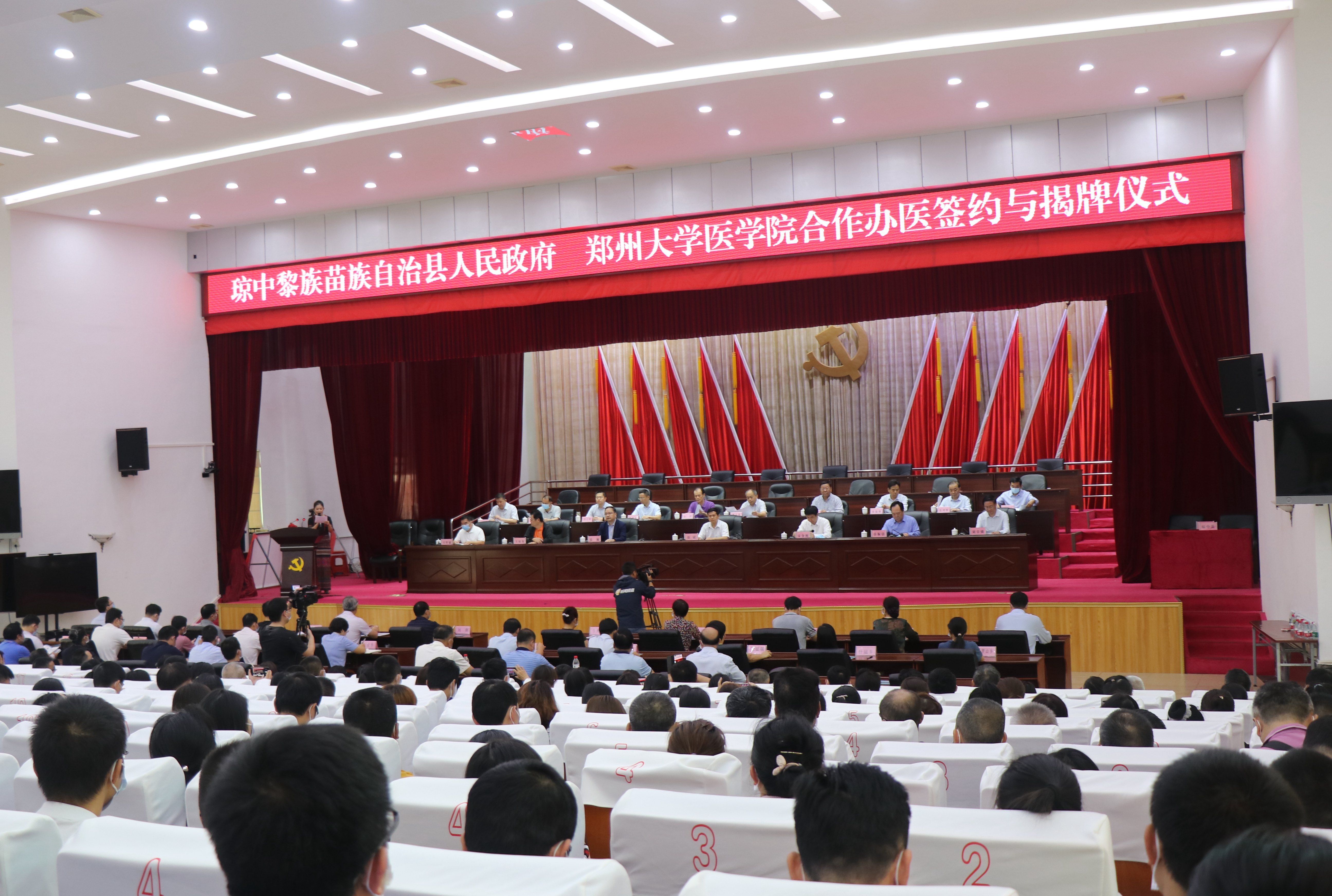 刘章锁和琼中县副县长陈海滨代表双方签署《海南省琼中黎族苗族自治县人民政府德赢AC米兰中国官方网站医学院托管协议》。宋争辉、徐斌共同为德赢AC米兰中国官方网站琼中医院揭牌。