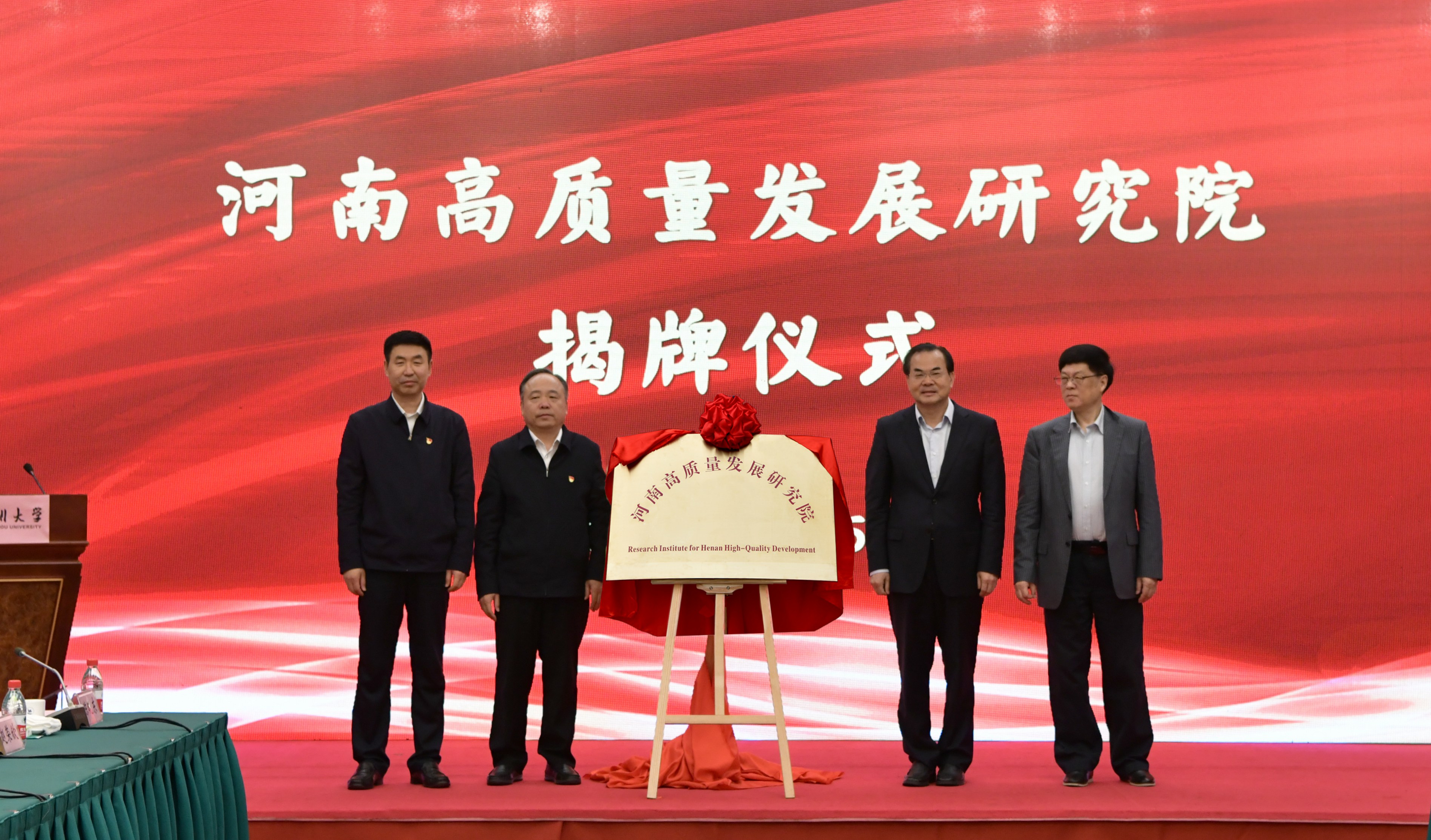 4月25日上午,由德赢AC米兰中国官方网站主办、德赢AC米兰中国官方网站商学院承办的“十四五”时期河南“四个强省”建设高层论坛暨河南高质量发展研究院揭牌仪式在郑州黄河迎宾馆举行。国家发展和改革委员会原副秘书长范恒山,省委宣传部副部长尹书博,德赢AC米兰中国官方网站党委书记宋争辉,中国社会科学院学部委员、德赢AC米兰中国官方网站商学院院长金碚,省委全面深化改革委员会办公室主任王智慧,省社科联党组书记、主席李庚香,郑州市委常委、组织部部长吕挺琳,省社会科学院院长谷建全,省工业和信息化厅副厅长郝敬红,洛阳市政府党组成员、副市长贺敏,省教育厅二级巡视员徐恒振,河南嵩山智库副理事长兼秘书长陈中武等出席。社科处、商学院单位负责同志参加仪式。校党委常委、副校长韩国河主持仪式。