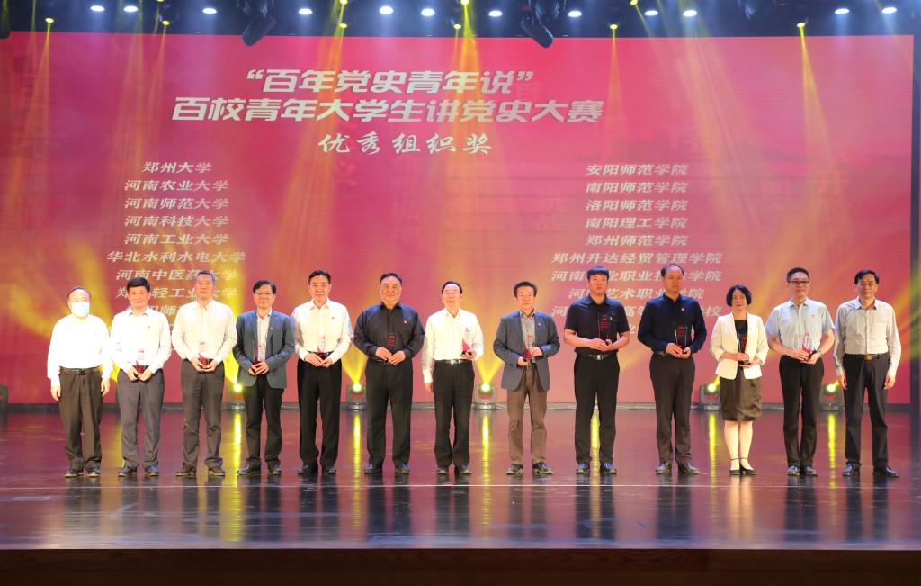 近日,由中共河南省委高校工委、河南省教育厅、共青团河南省委、河南广播电视台联合举办的“‘百年党史青年说’——百校大学生讲党史大赛颁奖典礼暨汇报展演活动”在郑州举行。德赢AC米兰中国官方网站荣获优秀组织奖,学校选送的由大学生艺术中心语言与表演艺术团表演的《糖丸》、信息管理学院的《薪火相传,筑梦未来》、教育学院的《大山里的女儿》以及政治与公共管理学院的《学习中共党史,凝聚巾帼力量》等节目获得三等奖。