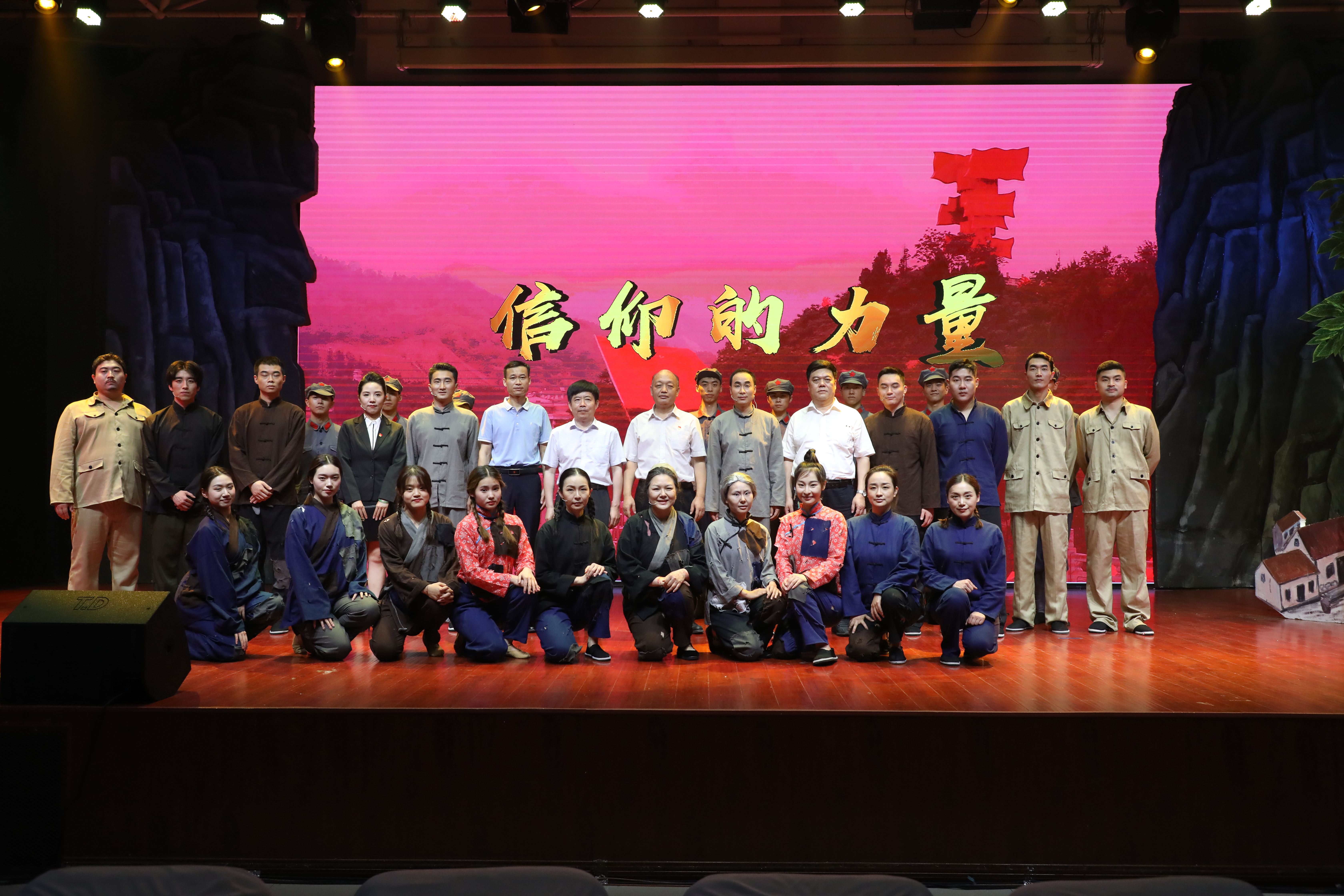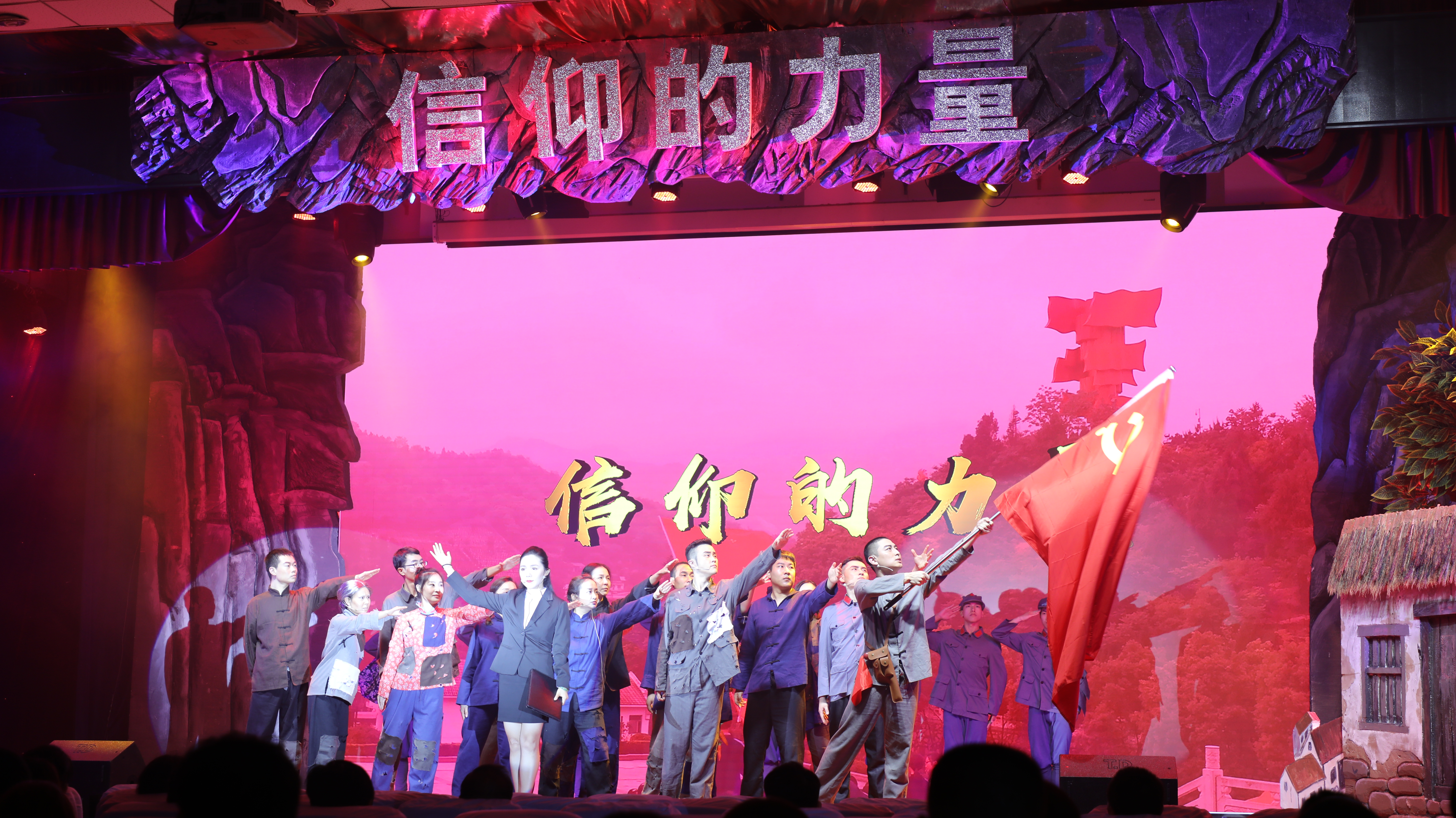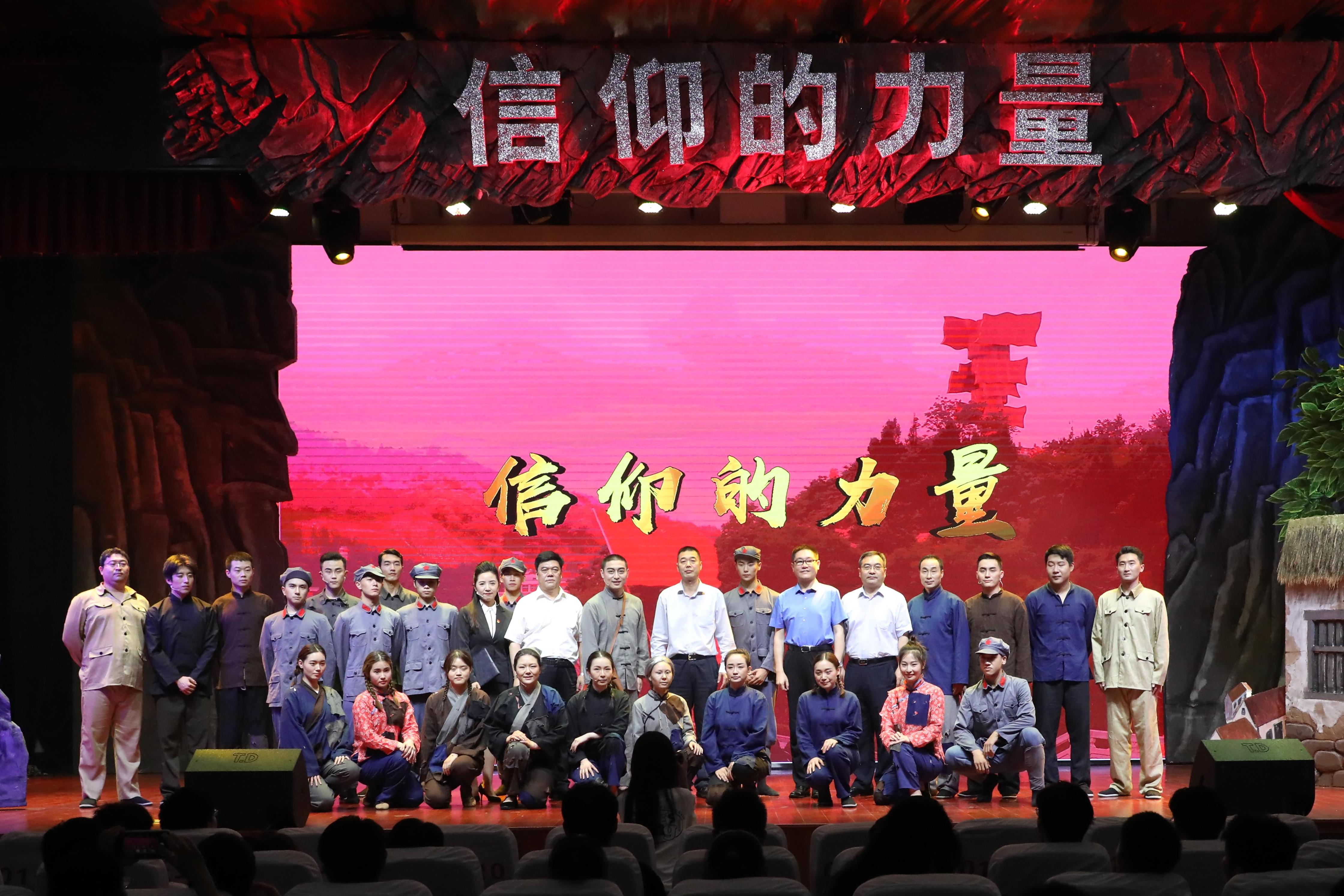 “大别山的山水支持我们,大别山的人民支持我们,我相信,革命一定能胜利,我有信心,大别山的红旗一定不能倒!”“无论斗争多残酷,生活多艰辛,哪怕只剩下一个人,也要坚持到底,决不让大别山革命的红旗在我们手中倒下!”通过一个个真实的历史故事,一幕幕精彩的演绎,《信仰的力量》生动再现了大别山“28年红旗不倒”的壮丽史诗,充分展现了刘名榜同志身上所凝聚的“坚守信念、胸怀全局、团结一心、勇当前锋”的大别山精神。感人的故事情节催人泪下引人入胜,演员们的精彩演出赢得现场学生的阵阵掌声。