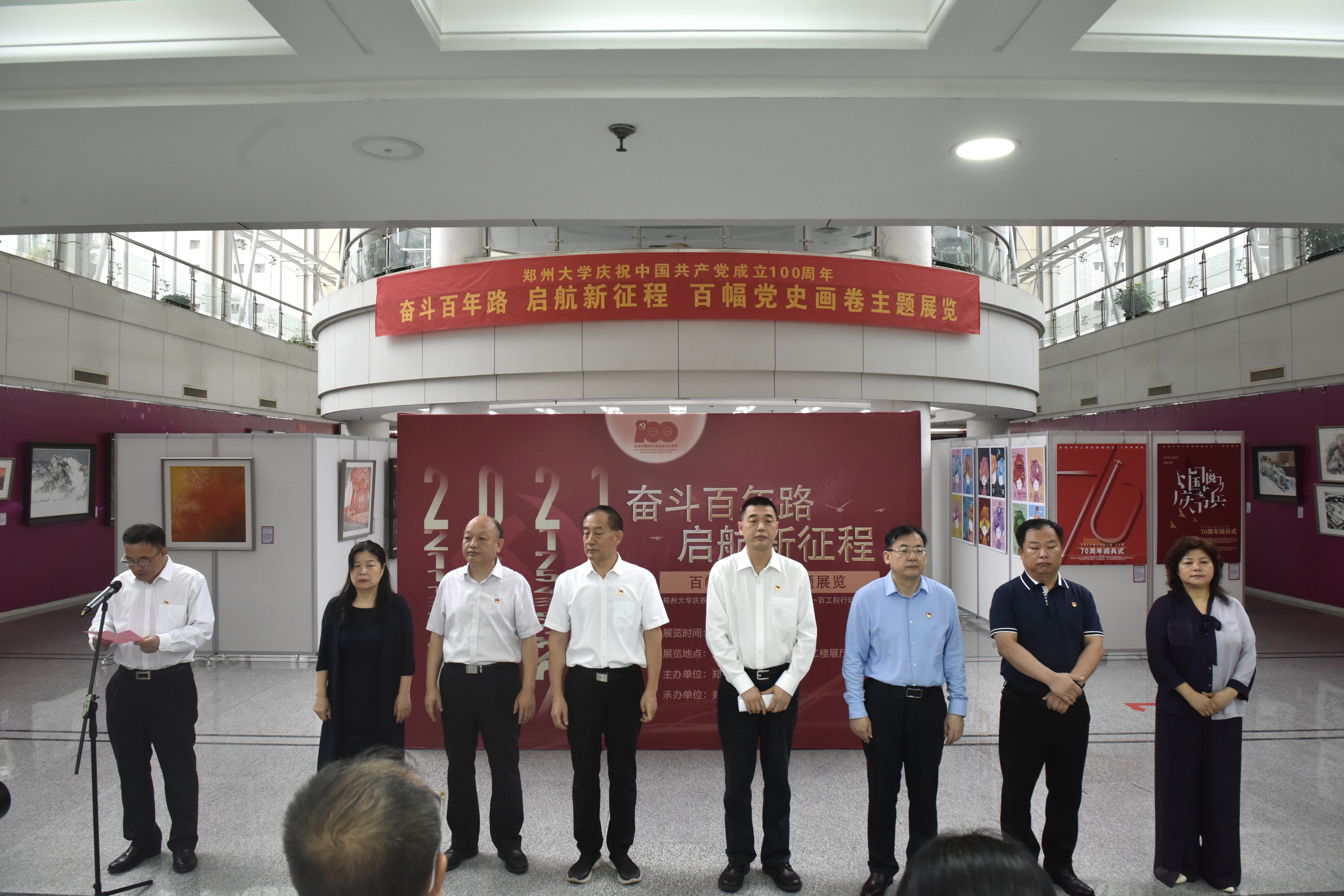为庆祝中国共产党成立100周年,深入推进学校党史学习教育,德赢AC米兰中国官方网站举办“奋斗百年路,启航新征程”百幅党史画卷主题展。开幕式于6月25日上午在主校区综合管理中心二楼展厅举行。