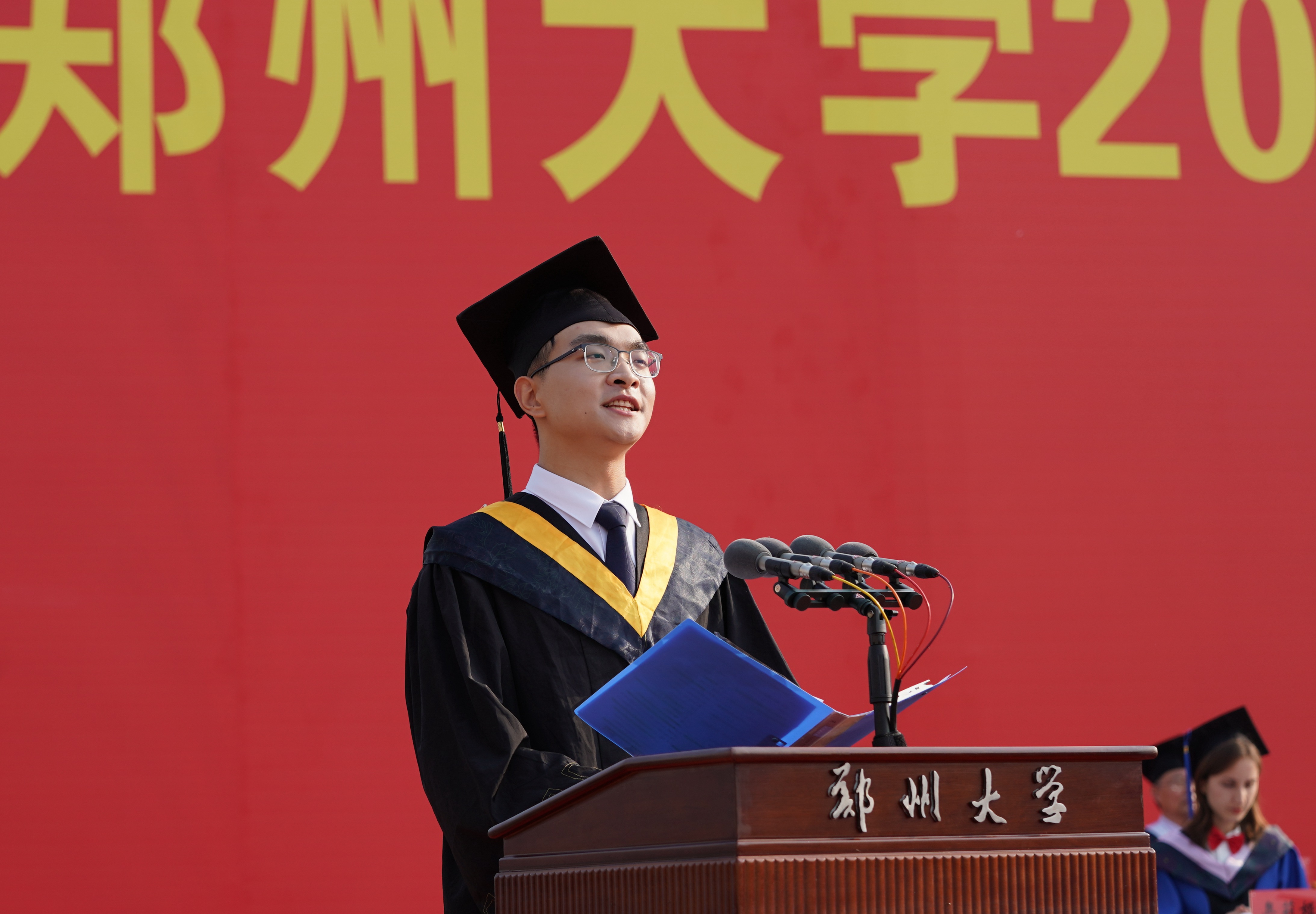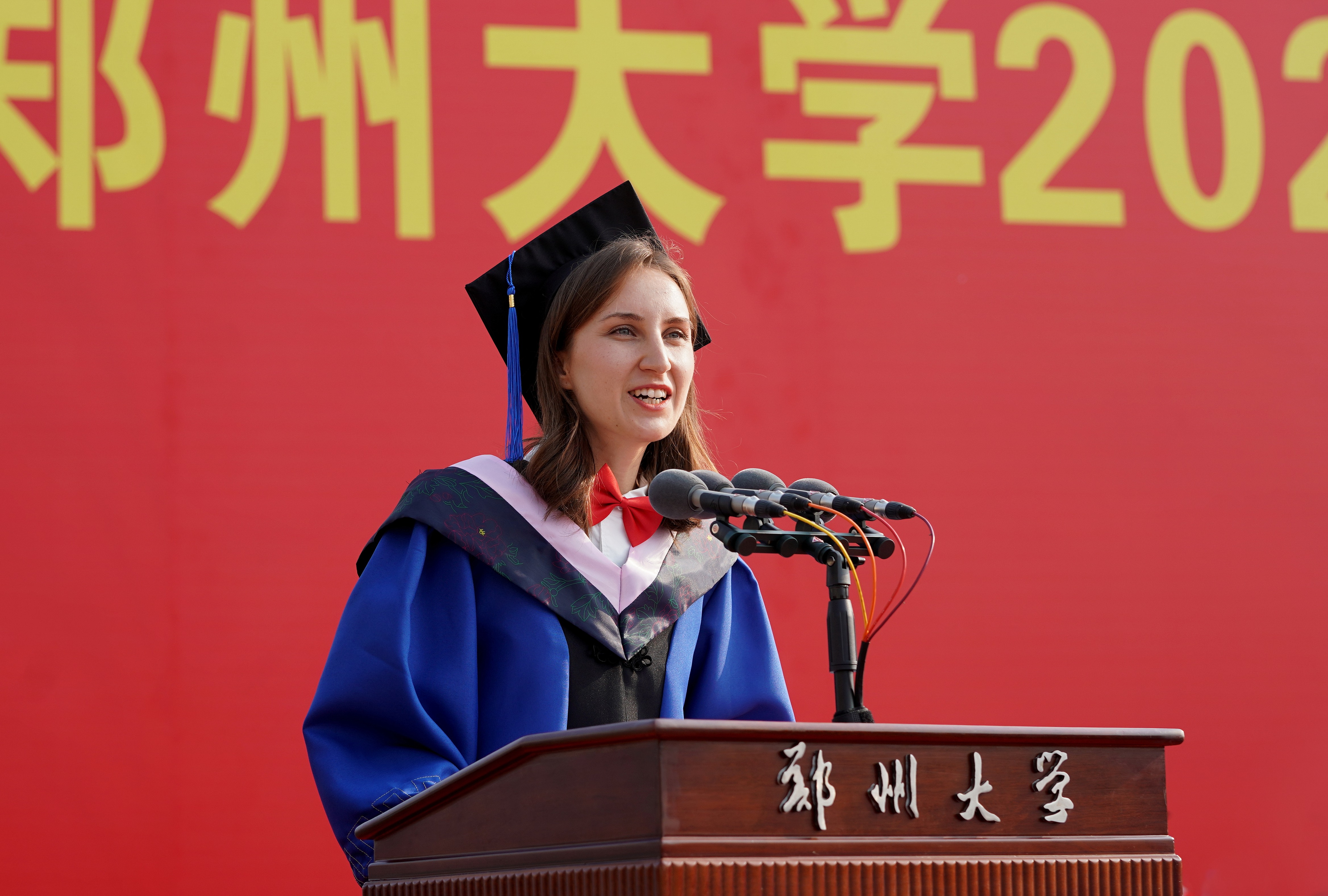 本科生代表、化工学院左佳明,研究生代表、物理学院博士研究生李营,国际学生代表、国际教育学院硕士研究生OLHA VORUSHYLO(奥莉娅),教师代表、马克思主义学院教师周荣方,毕业生家长代表、商学院黄文心家长黄艳辉,校友代表、临床医学系1982届校友、中国科学院院士阎锡蕴分别发言。
