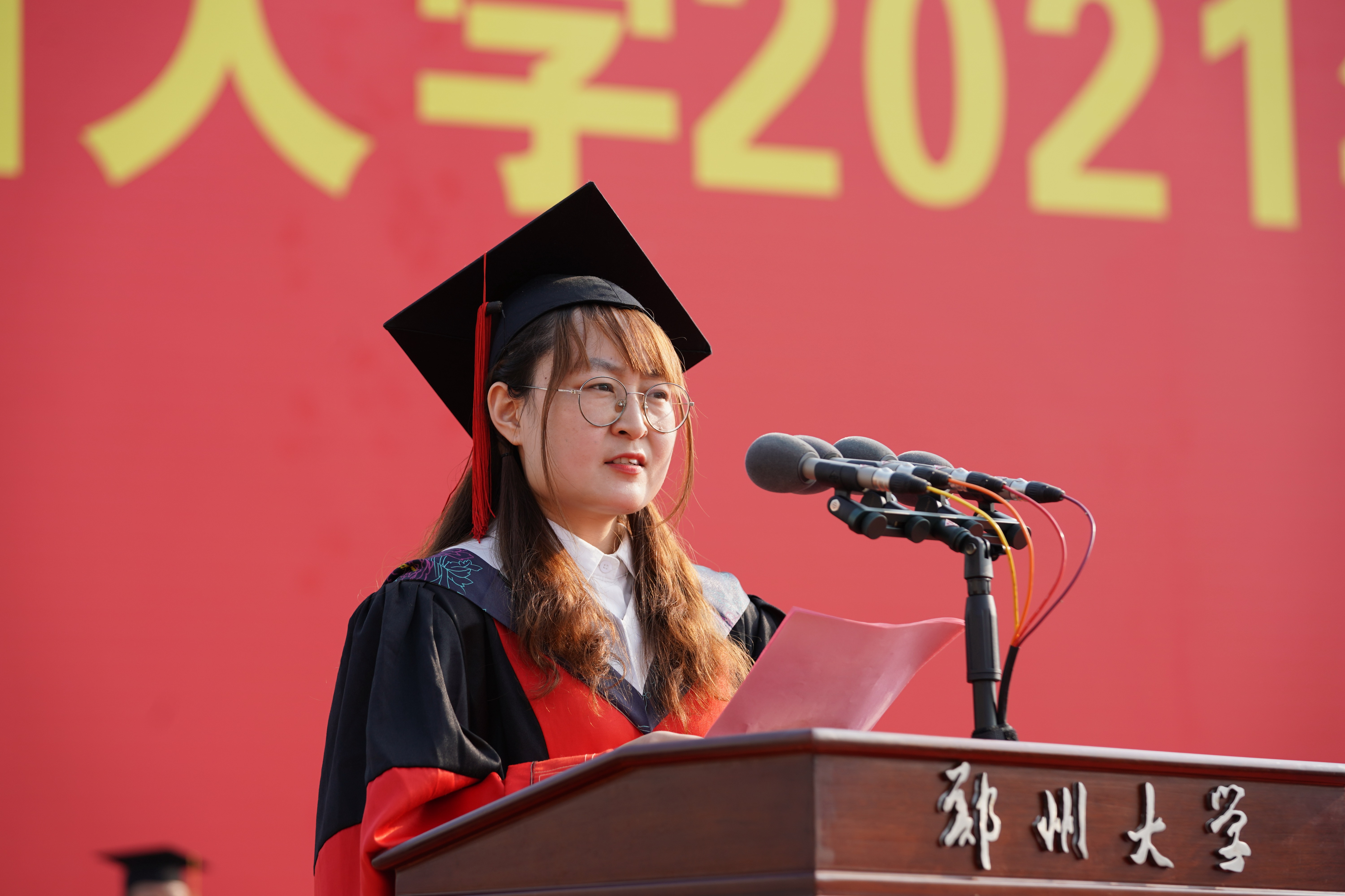 典礼开场播放了2021年毕业纪念视频——《难忘郑大》。视频记录了同学们在春生夏长中深耕学业,在时光年轮中镌刻青春,在守望相助中战胜疫情,永葆进取精神,激发创新力量,成长为一张张熠熠发光的“郑大名片”。