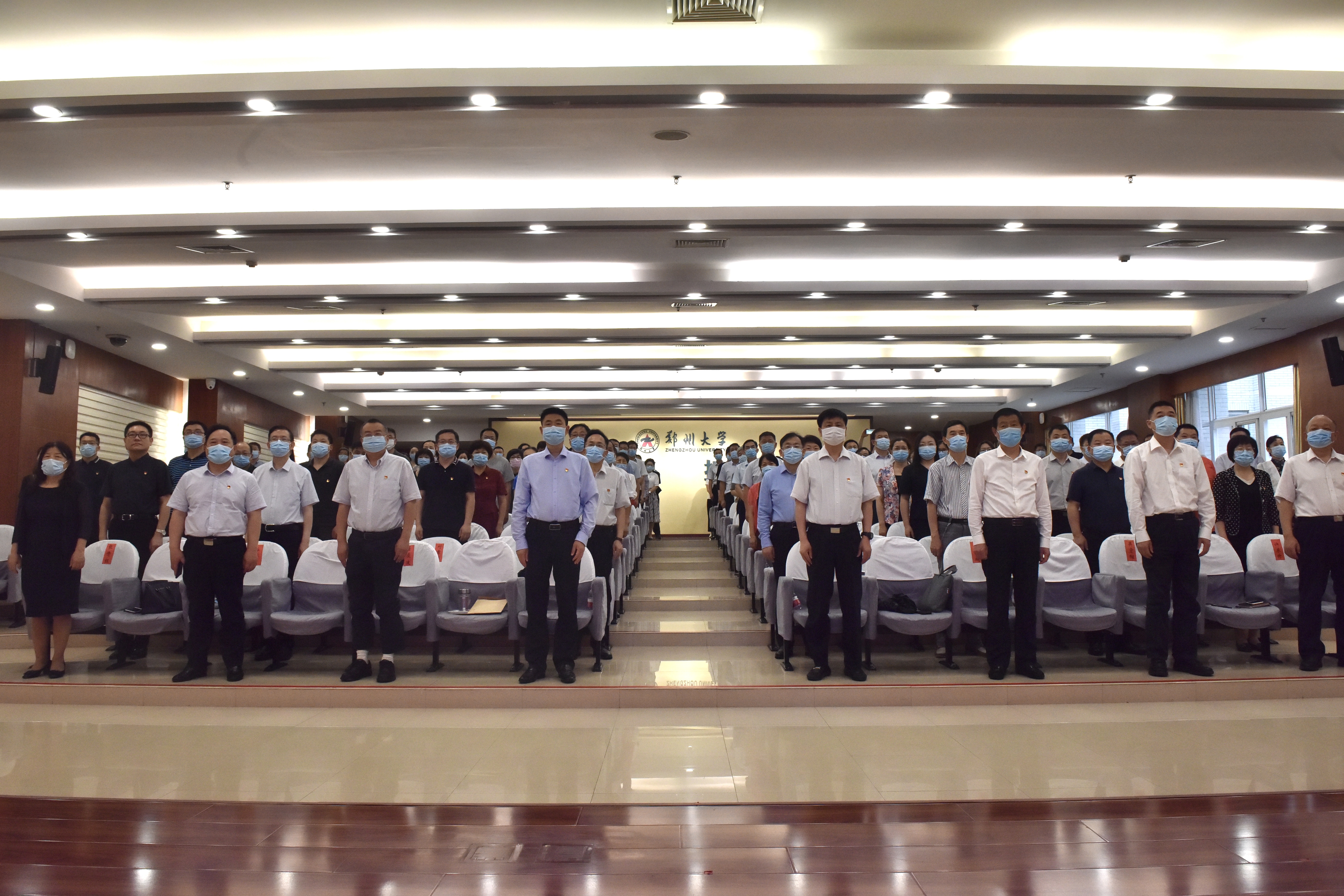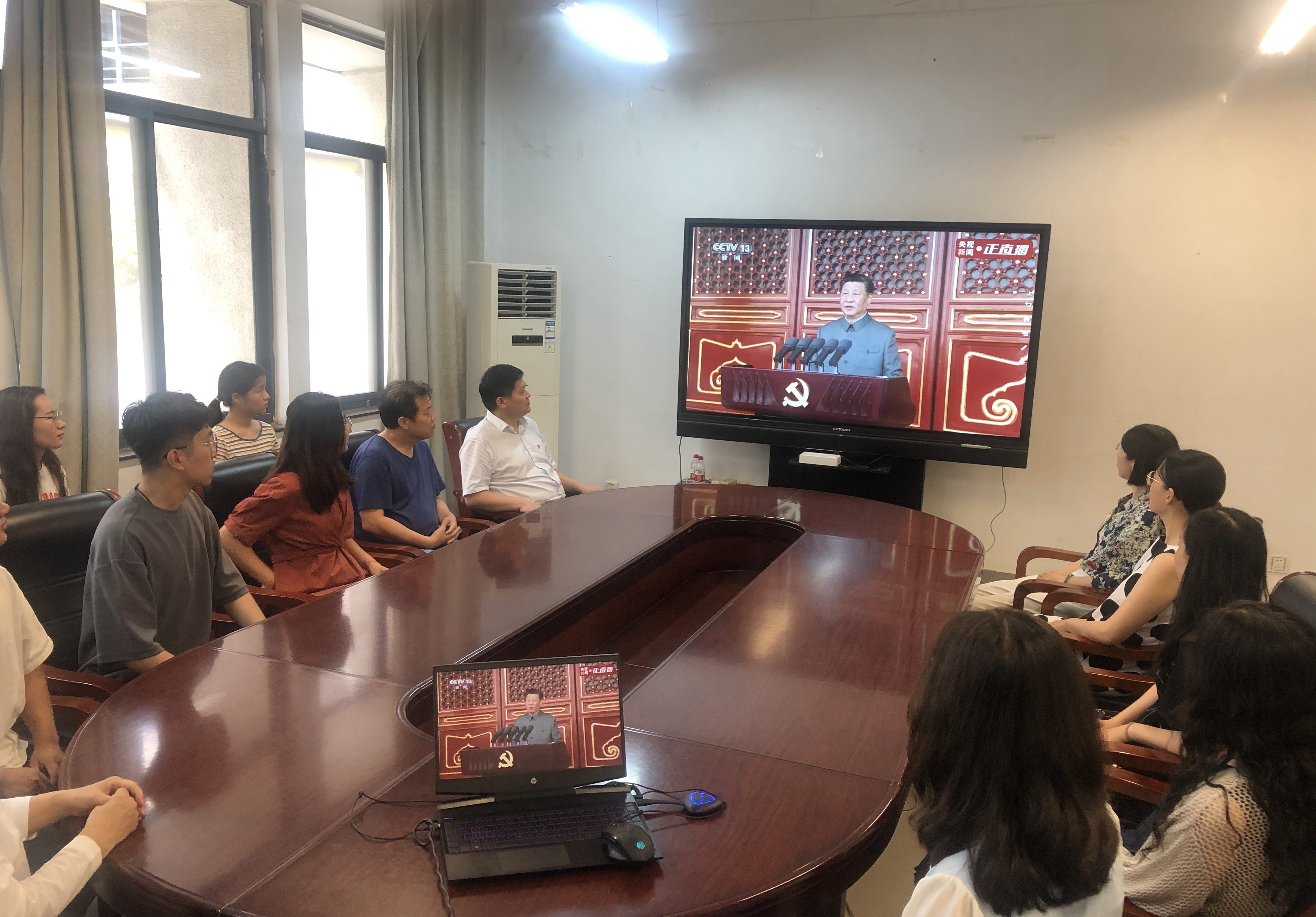 全体在校校领导、机关干部职工代表集中观看大会直播