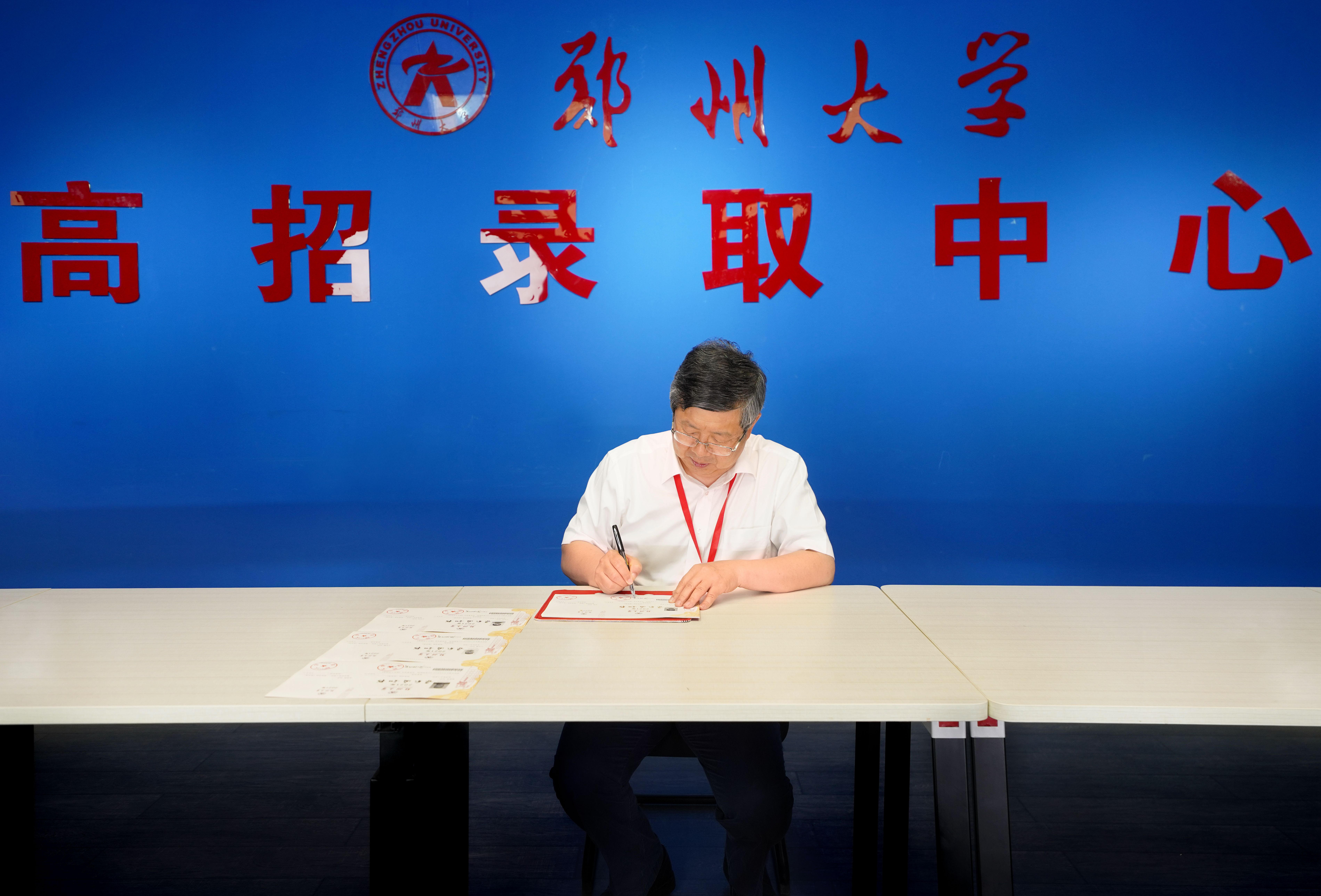 德赢AC米兰中国官方网站首批签发的700份本科录取通知书涵盖了13个省市的16个批次,既有艺术、体育类新生,也有依据台湾学测考试、联招考试录取的港澳台侨新生。录取通知书以红,白,金三色为主。彰显了德赢AC米兰中国官方网站的深厚底蕴,展示了全体郑大人不断开拓创新的决心。中国书法家协会名誉主席、书法学院院长张海先生亲笔提写的“录取通知书”,使得这份录取通知书更加有纪念意义和收藏价值。通知书背面以打造具有“德赢AC米兰中国官方网站特色文化”为设计出发点,将德赢AC米兰中国官方网站代表性建筑和中原文化相融合,构成一幅具有中国传统特色的图案。