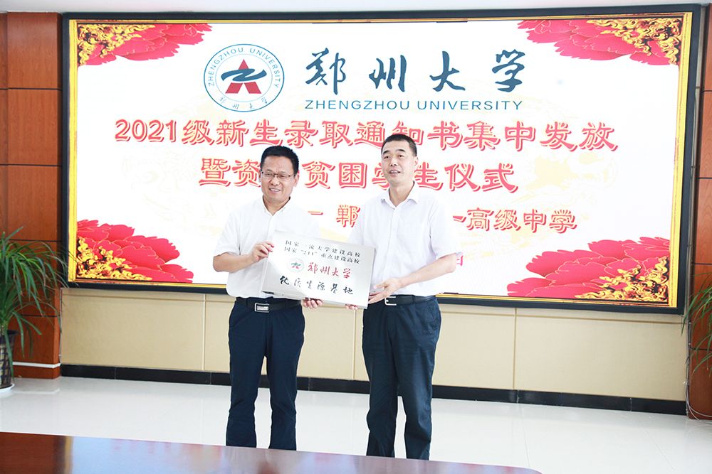 随后,吴宏阳向刘成章授予新的德赢AC米兰中国官方网站优质生源基地牌匾,并同学生处、招生办公室主要负责同志一起为124名郸城一高毕业的郑大新生现场发放录取通知书和学习用品。仪式上还为即将迈入郑大校园的20名建档立卡学生发放了助学金。