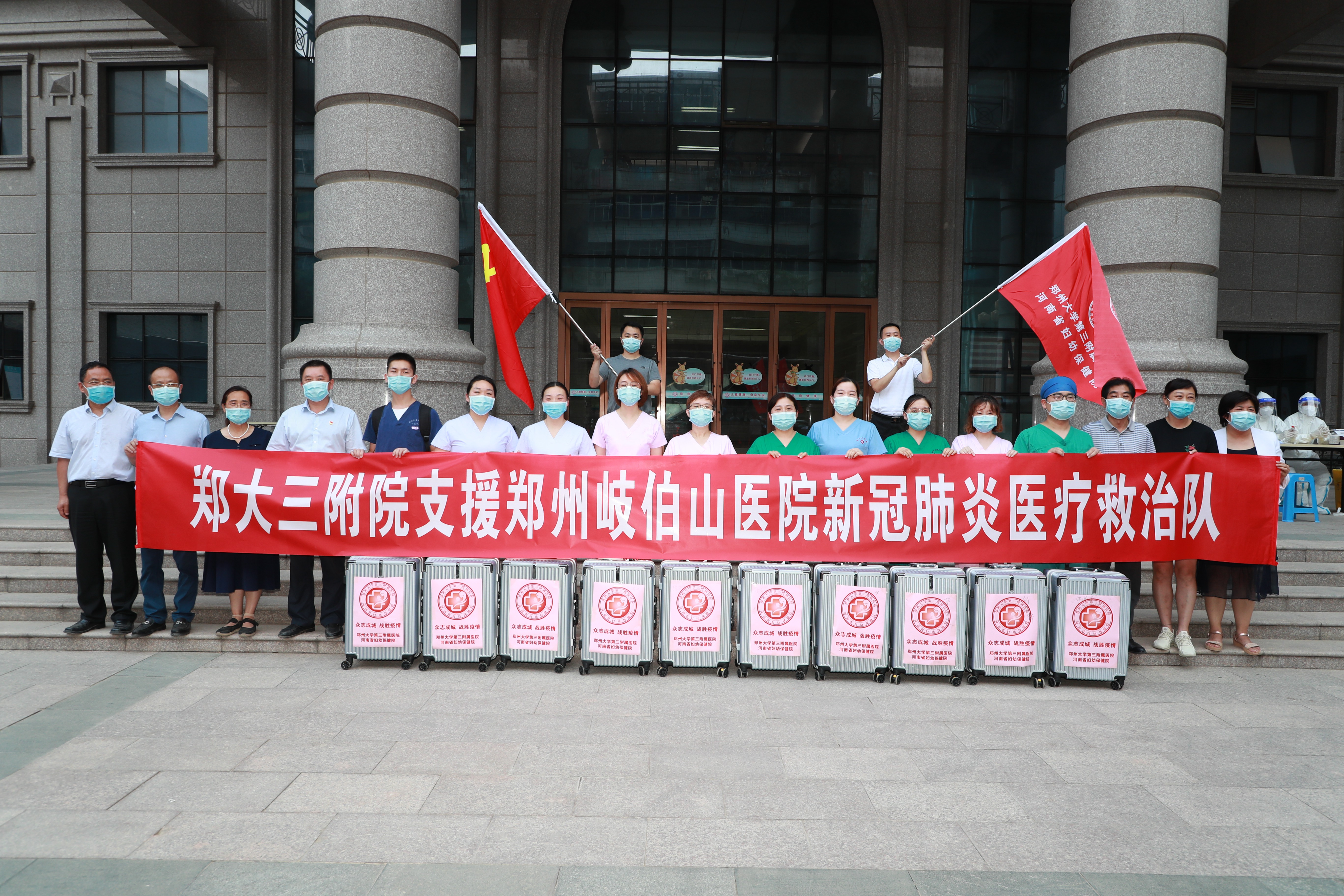 同时,8月4日下午,医院统一协调,有护理部从医院14个重点学科中遴选出10名政治素养过硬、专业知识娴熟、身体、心理素质较强的护理骨干,组成了支援郑州岐伯山医院医疗救治队,将全方位支援郑州岐伯山医院新冠肺炎医疗救治工作,第五批医疗队正式出征。