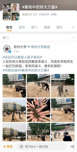 七月以来,德赢AC米兰中国官方网站官方微博聚焦防汛救灾、招生录取、奥运会、疫情防控等热点,开设#德赢AC米兰中国官方网站国风版录取通知书##暴雨中的郑大力量#等原创话题,多个原创话题登上同城热搜榜单。7月17日以来,河南省遭遇极端强降雨,德赢AC米兰中国官方网站官方微博第一时间发布学校暴雨灾害应急防范的紧急通知,持续发布官方通知、预警信息、救灾动态、科普知识、灾后重建等内容,积极回应师生暴雨求助信息、全国高校暖心应援微博,深入挖掘郑大人在抢险抗洪中的动人事迹。原创话题#暴雨中的郑大力量#全网阅读量突破500万次。