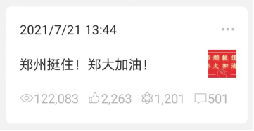 近两个月以来,德赢AC米兰中国官方网站官方微信将抗洪抗疫宣传工作作为首要任务,发布《郑州挺住!郑大加油》《他们在暴雨中闪烁!》《这只以特级英雄命名的部队,入驻郑大》等系列主题推文,挖掘感人抗洪故事,传递温暖正能量;发布《紧急!重要!速看!》,及时传递疫情信息,做好疫情宣传防控工作。其中,《郑州挺住!郑大加油》阅读量达10w+,点赞量超2200次,12篇优质推文阅读量超3万次。此外,官方微信聚焦本科生录取通知书发布、郑大校友在东京奥运会夺取金牌等热点,发布众多深受读者喜爱的推送。