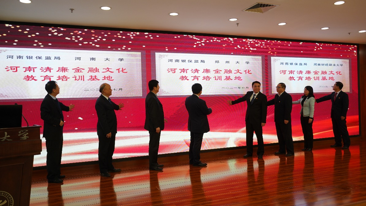 根据合作计划,河南银保监局与三所高校将共建“河南清廉金融文化教育培训基地”。与会领导共同为“河南清廉金融文化教育培训基地”揭牌。
