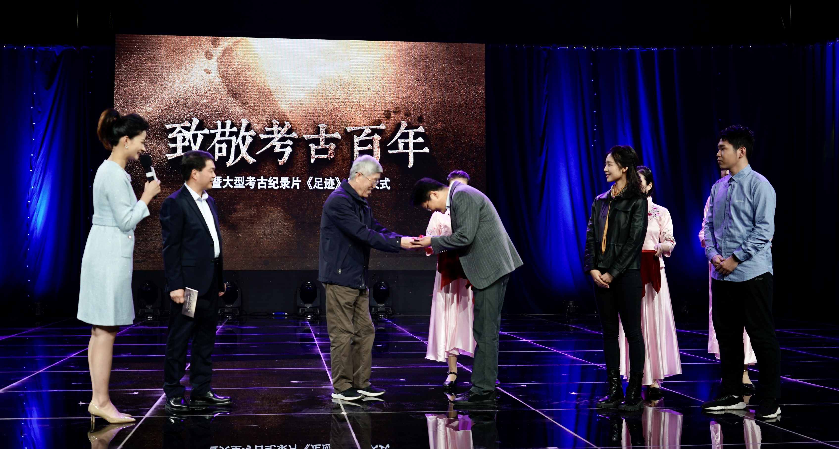 刘庆柱先生结合100年来中国现代考古发现的科研成果,论述了河南考古和中国考古的关系。历史学院张国硕教授讲述了历代河南考古人扎根考古事业的感人事迹。刘庆柱先生和张国硕教授现场向教师和学生代表传承了考古发掘工具,彰显了考古专业师生把优良学风和扎实作风代代相传的信心和决心。蒋宇超副教授就大型考古纪录片《足迹》的创作初心等内容,对顾万发、齐岸青、刘林军、郭昕晖进行了现场访谈。