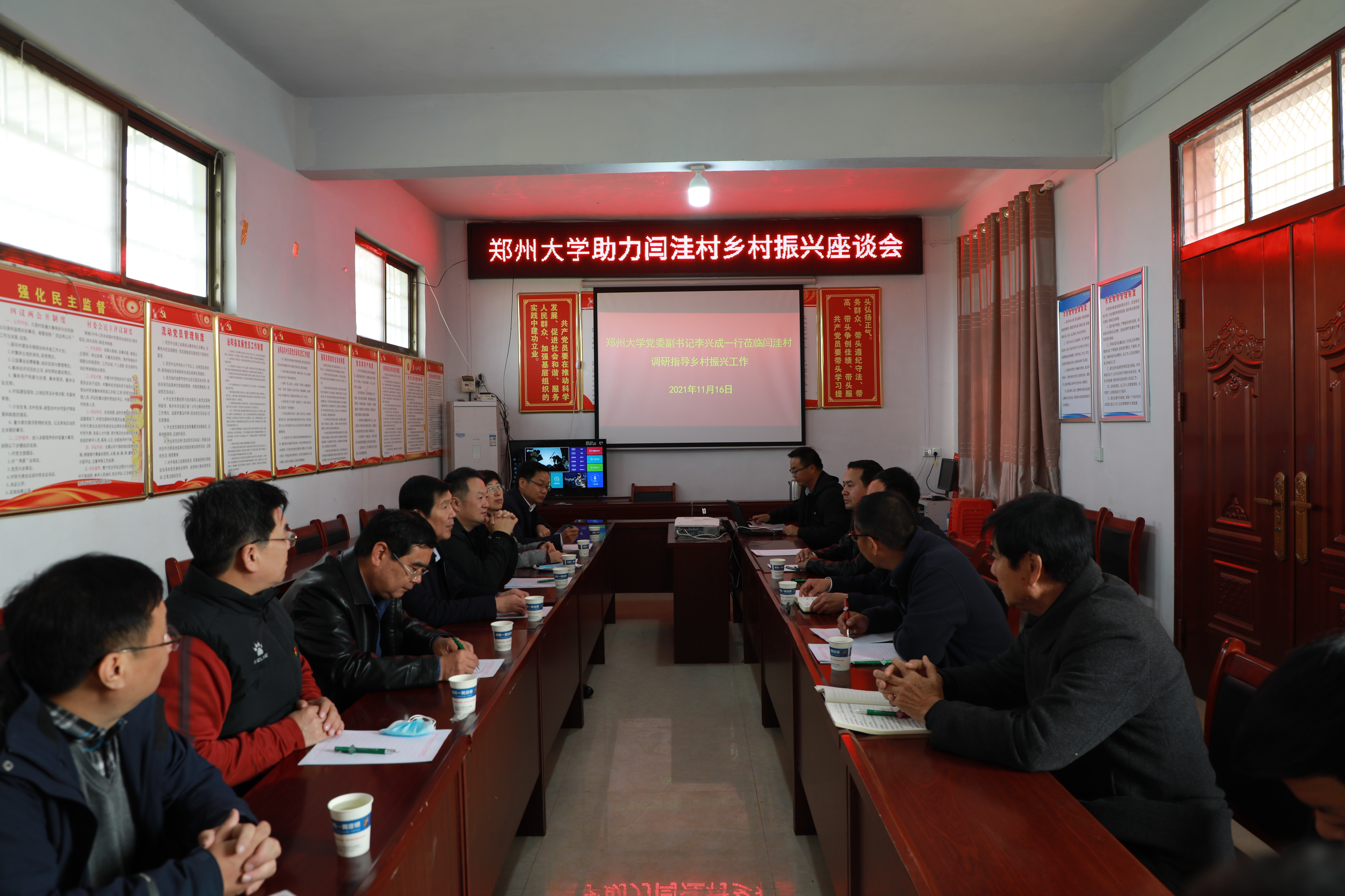 11月16日,校党委副书记李兴成带队到学校定点帮扶村--泌阳县双庙街乡闫洼村看望驻村干部、慰问困难群众、调研指导乡村振兴工作。校党委常委、统战部部长王莉华,党委组织部(党校)、校纪委、干部培训中心等单位负责同志参加活动。泌阳县县委副书记陈东和双庙街乡党政主要负责同志陪同调研。
