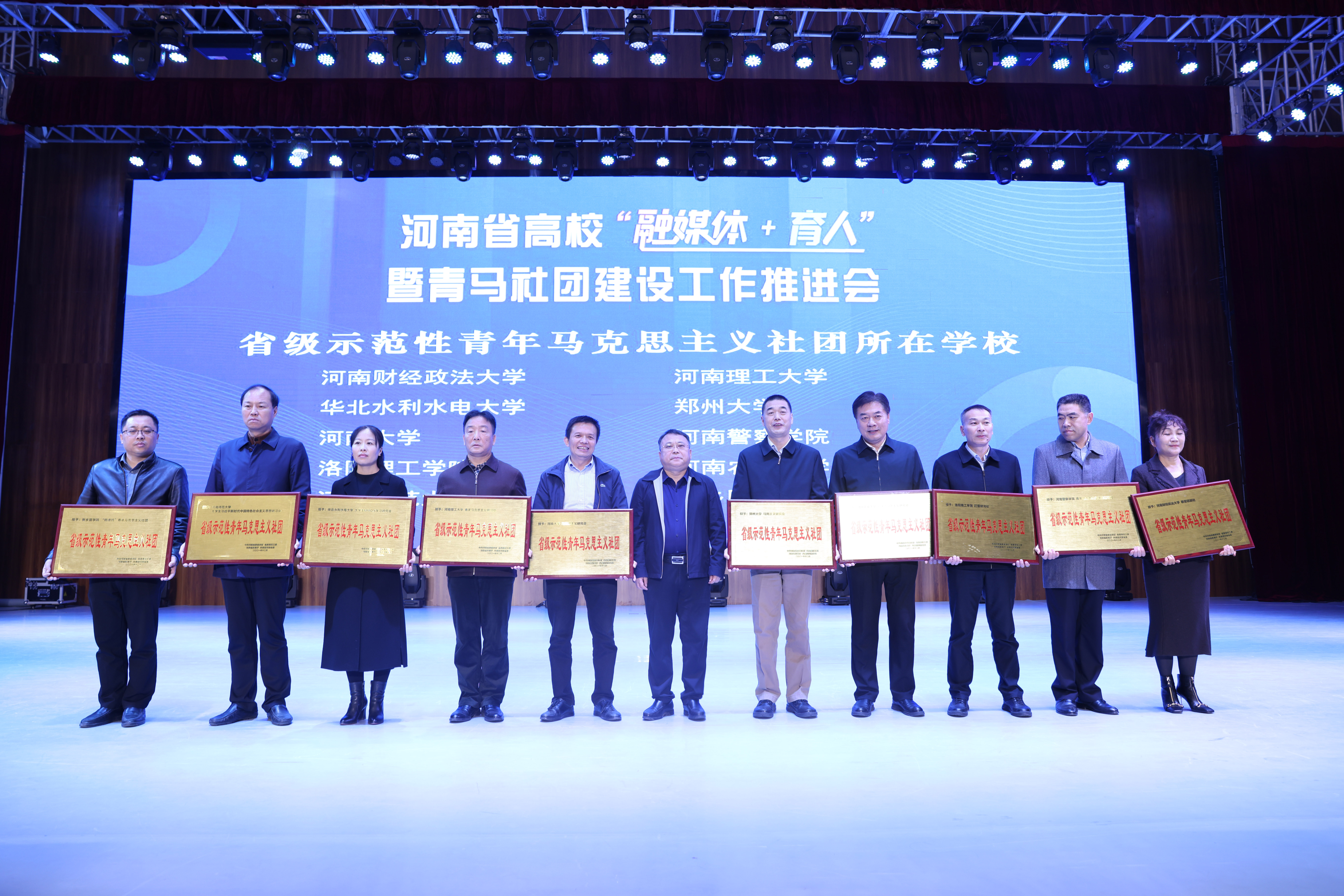 会上宣布了河南省高校“融媒体+育人”工作试点单位和培育单位名单、省级示范性青年马克思主义社团和优秀青年马克思主义社团名单并授牌。德赢AC米兰中国官方网站成功获批“融媒体+育人”工作试点单位,马列主义研究会荣获“省级示范性青年马克思主义社团”称号,谭宇、胡树飞获评社团工作优秀指导老师,王松岩获评社团工作先进个人。校党委宣传部代表学校作了融媒体育人工作汇报。