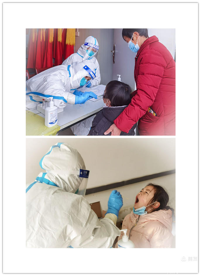 马寨镇水磨村,一附院医务人员正在娴熟地进行咽拭子采样,“乖,把嘴张开,放轻松,啊……”然后迅速单手开试管,折断拭子封存标本, 整个过程短短几秒。