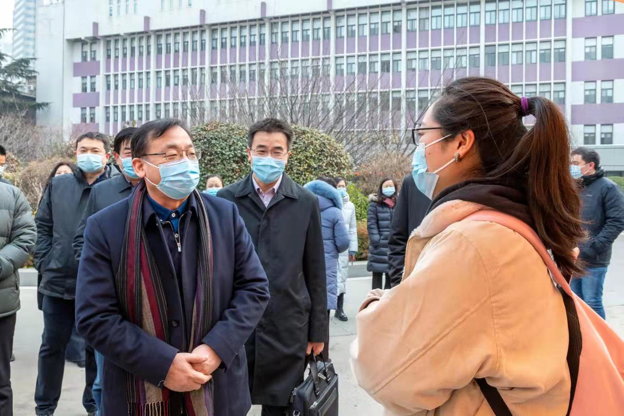 省政协副主席、校党委书记、校长刘炯天等校领导在博士后公寓检查指导学生返校复学工作