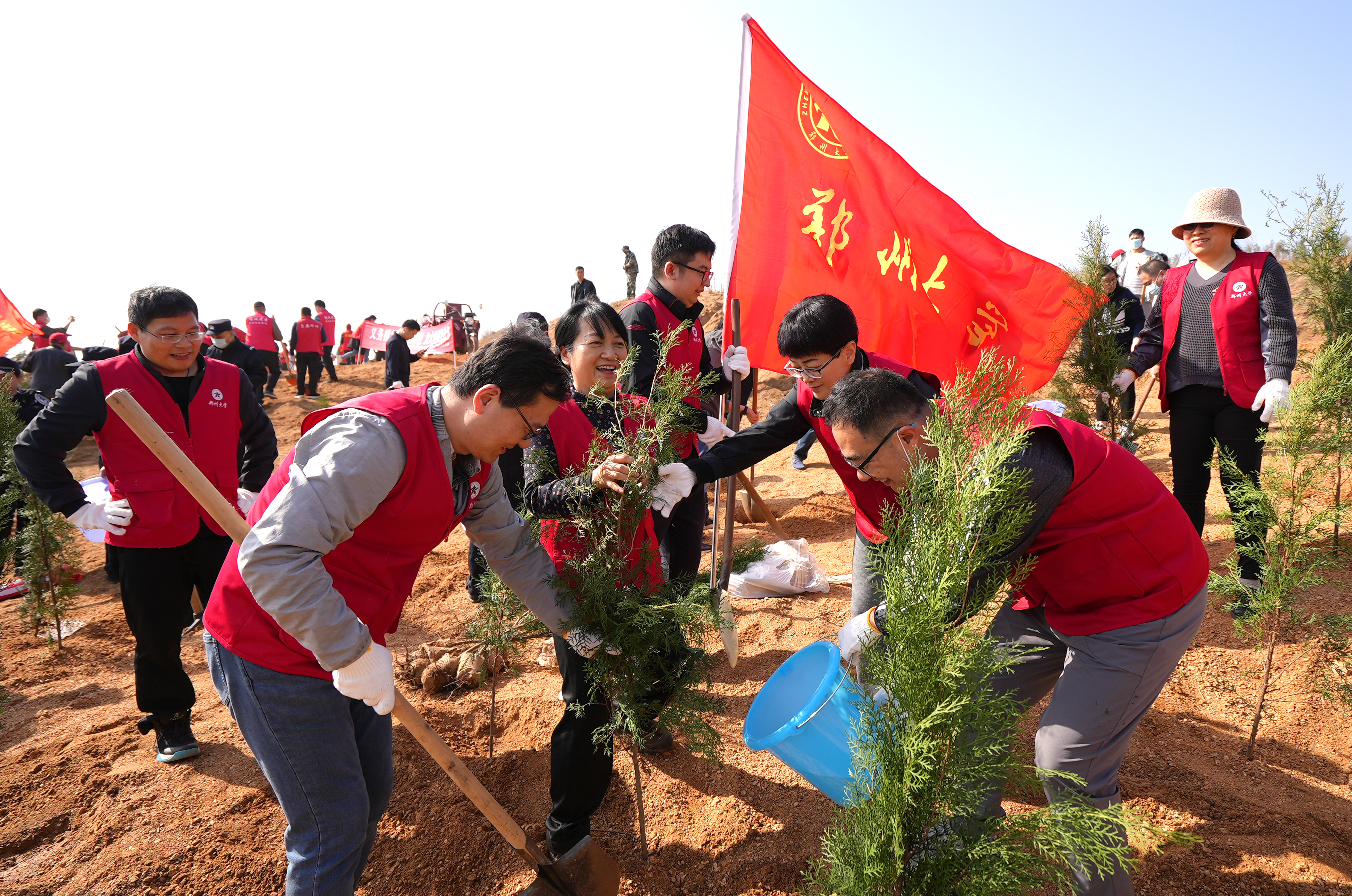 德赢AC米兰中国官方网站干部职工一到植树现场就投入了紧张的植树活动,挥锨、培土、扶正、踩实、围堰、浇水,忙个不停。大家分工协作,相互配合,将侧柏、油松树苗一棵棵栽下,确保栽一株活一株,栽一片成一片,现场呈现出一片热火朝天的劳动景象。新栽种的树苗整齐有致,迎风挺立,在春风的吹拂下焕发出勃勃生机。