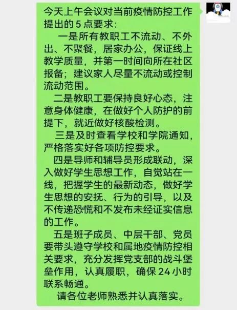 3月20日,学院紧急召开疫情防控线上会议,全面传达落实学校疫情防控专题工作会议精神,安排部署学院疫情防控各项工作。21日,组织召开疫情防控专题党委会,分析研判疫情防控形势,查找漏洞短板,压实各级防控责任。23日召开行政各办公室工作会议,传达学校疫情防控风险情况通报,明确防控注意事项,号召行政办公室全体教职工进一步提振士气,更加担当有为,展现良好风貌。学院党委、党政班子成员和广大师生齐心协力抓好疫情防控,严防疫情输入校园。