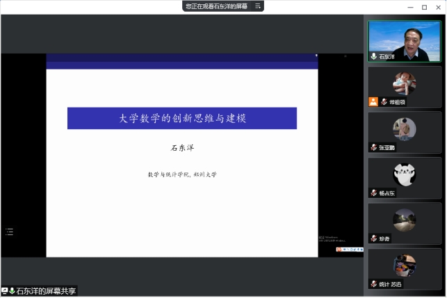 为丰富疫情防控期间学生的精神生活,筑牢学生同心抗疫的坚定信念,学院启动德赢AC米兰中国官方网站第二届数学文化节,陆续开启海棠论坛之“科技创新讲堂”和“数学空中课堂”,推进线上学术交流活动,通过全方位、多层次云端学术活动,激励学生热爱科学、追求真理,厚植学生学习数学的热情,播撒数学科普的种子,引导学生树立在加强国家基础学科研究中发一份光热、为筑牢建设世界科技强国的基石尽一份青年力量的大志。目前海棠论坛“科技创新讲坛”已开展“云讲座”两场,学院石东洋教授作题为《大学数学的创新思维与建模》的线上报告,带领学生感悟数学魅力,了解建模知识,在博大的数学世界中探索。第二届数学文化节中海棠论坛、海棠学术沙龙、寻找身边有趣的数学、“揭榜挂帅”来解题等将陆续展现,诠释“发现数学之美”,引领更多的人热爱基础学科,打牢科学基础。