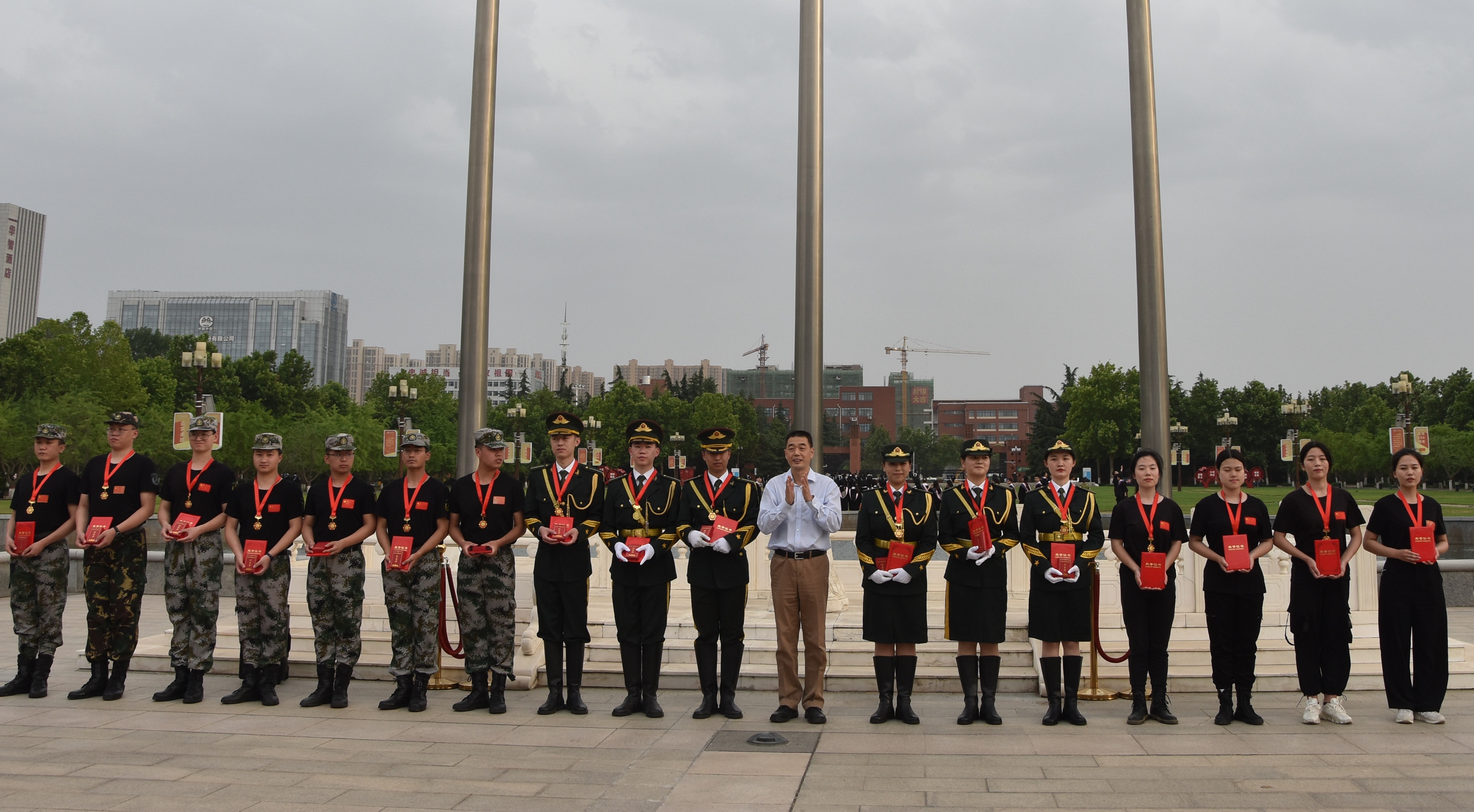 为传承国旗精神,深化爱国主义教育,营造“青春心向党,逐梦新征程”的毕业离校育人氛围,引导广大学生坚定理想信念、提升爱国荣校情怀,5月29日,德赢AC米兰中国官方网站举行国旗护卫队2018级队员退队仪式。校党委副书记吴宏阳出席,人民武装部、学生处负责同志及国旗护卫队全体队员以线上线下相结合的方式参加仪式。