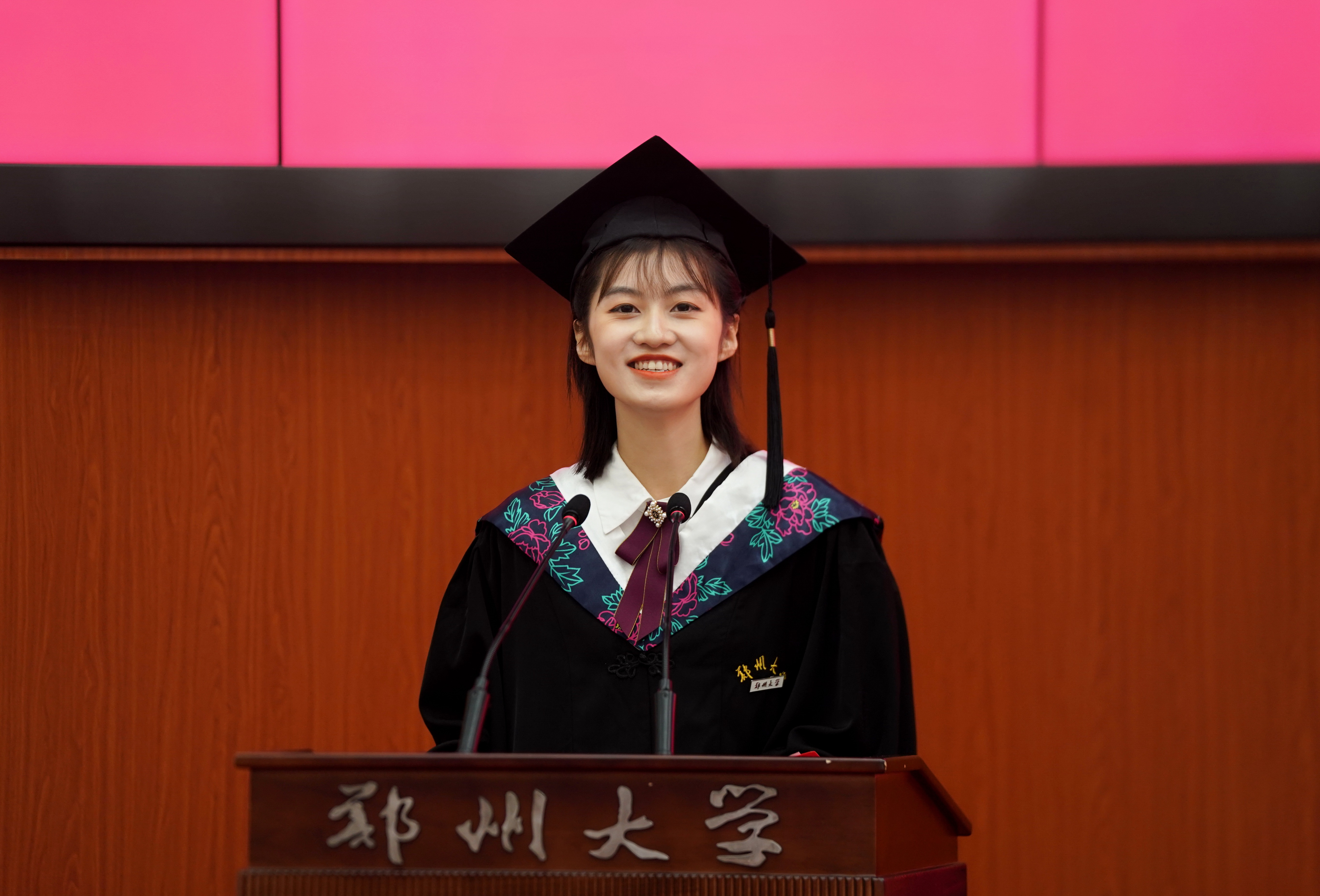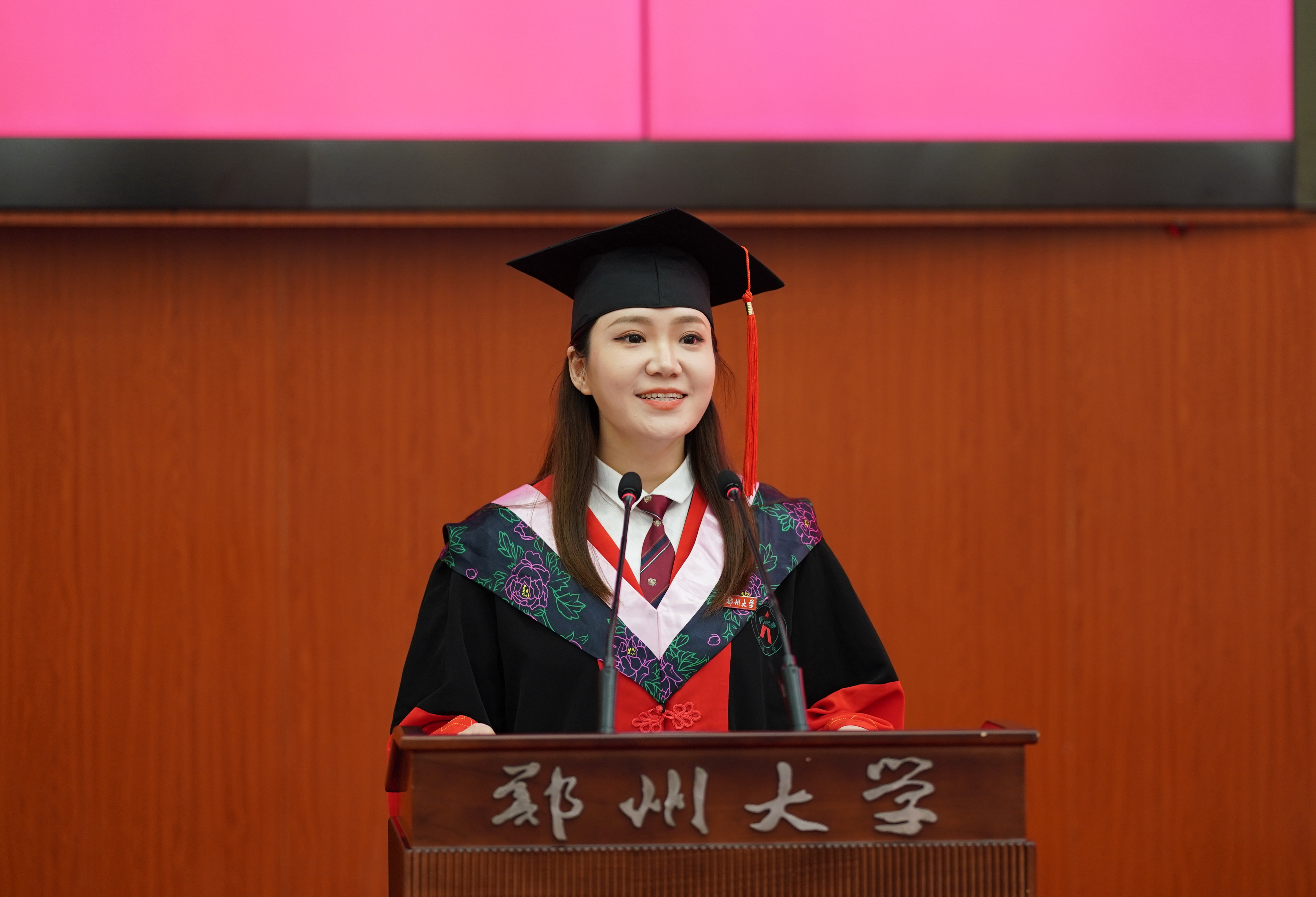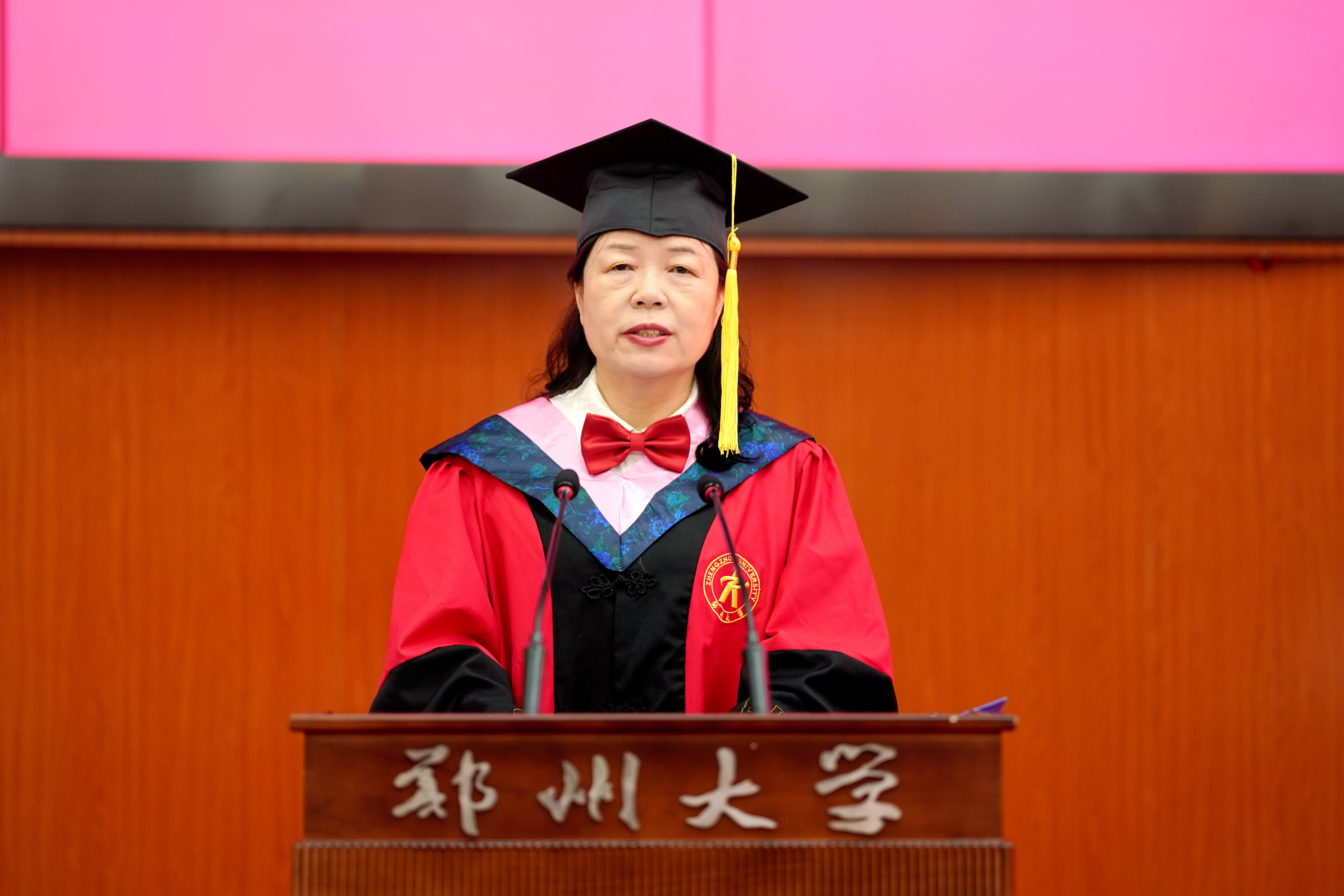 她希望同学们,常记郑大在心头,恪守“求是担当”的校训,遵循“追求卓越”的郑大精神,秉持“勿忘人民”的郑大情怀,做顶天立地的郑大人。