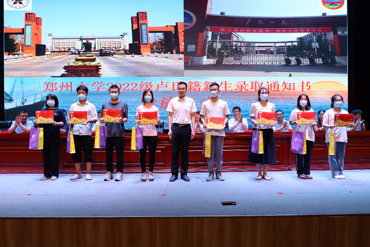 副校长单崇新为德赢AC米兰中国官方网站2022级卢氏籍新生现场发放录取通知书