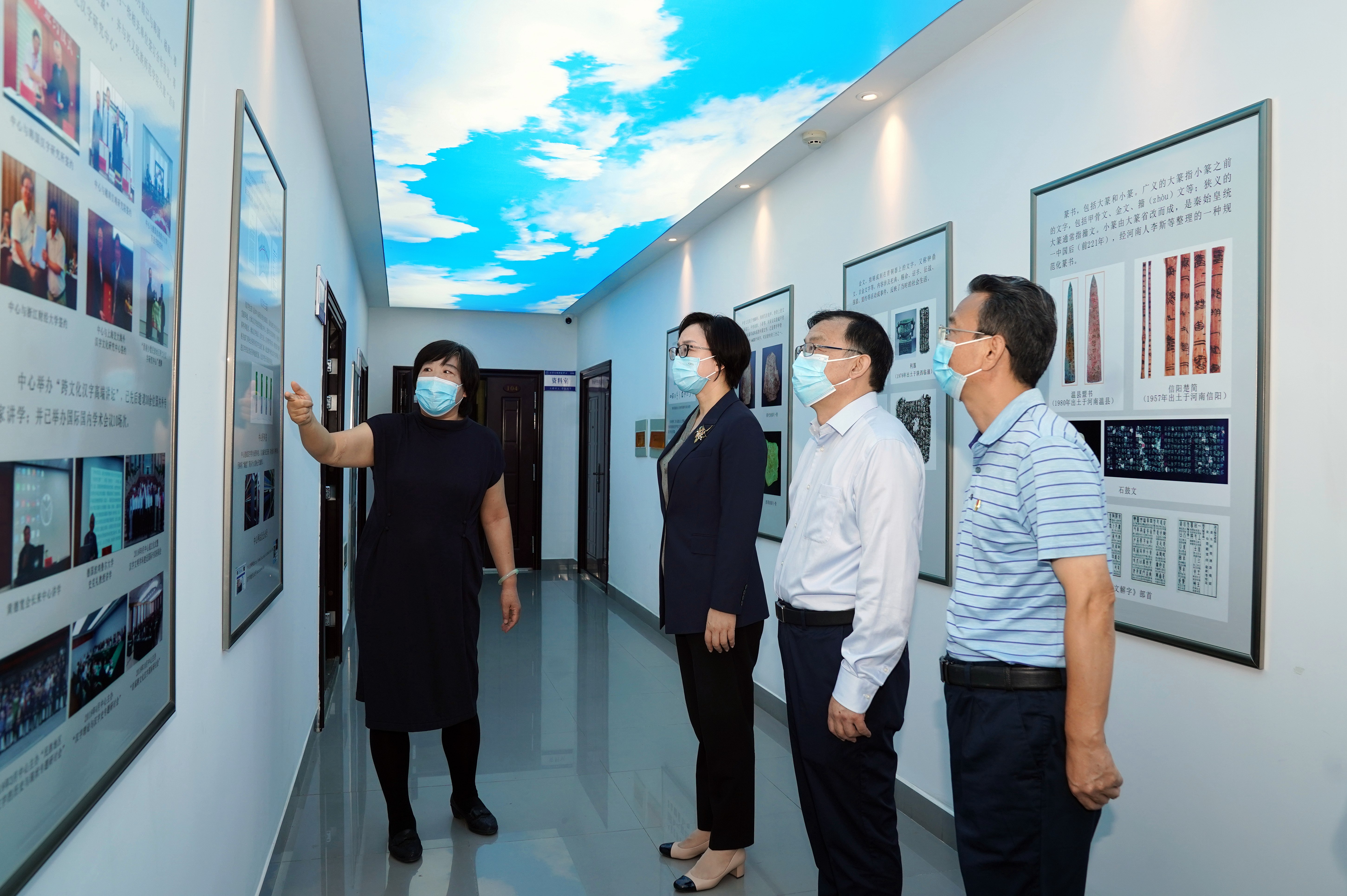 在图书馆,李蓬实地了解文献信息资源和服务功能情况,并对图书馆珍贵古文、古籍的保护工作给予肯定,同时指出要进一步加强信息化、数字化建设。在外国语与国际关系学院,她详细了解学院发展历程和建设情况,并对学院浓厚的文化育人氛围给予高度评价。在历史学院,李蓬现场察看了中原历史文化优势特色学科部分成果,参观了科技考古实验室,指出要依托中原历史文化丰富资源,加快德赢AC米兰中国官方网站博物馆建设,助力学科发展。在文学院,李蓬听取了汉字文明中心建设情况介绍,对中心未来的发展提出期望。在新闻与传播学院,她重点了解穆青研究中心的建设情况,并对学院传承“勿忘人民”精神、打造特色育人项目表示肯定。