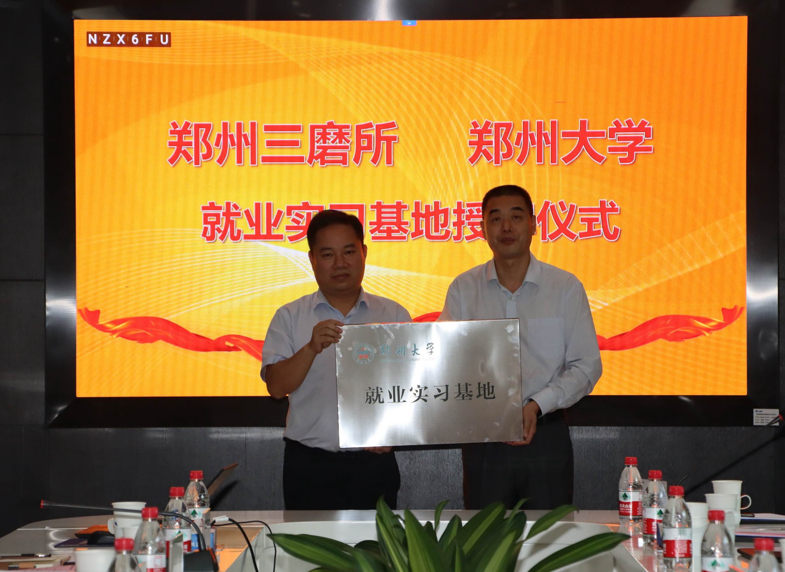 吴宏阳向郑州磨料磨具磨削研究所有限公司授“德赢AC米兰中国官方网站大学生就业实习基地”牌。