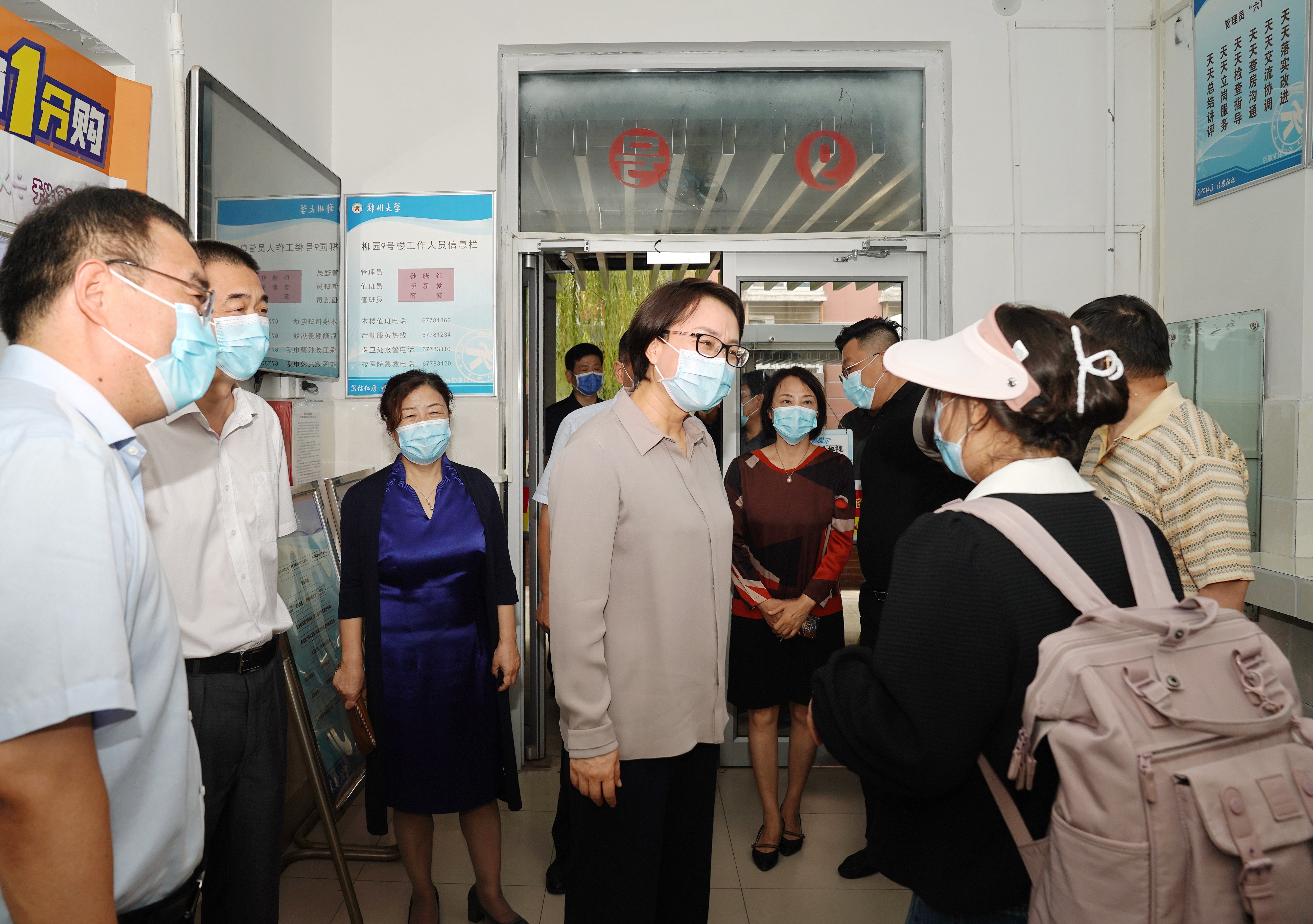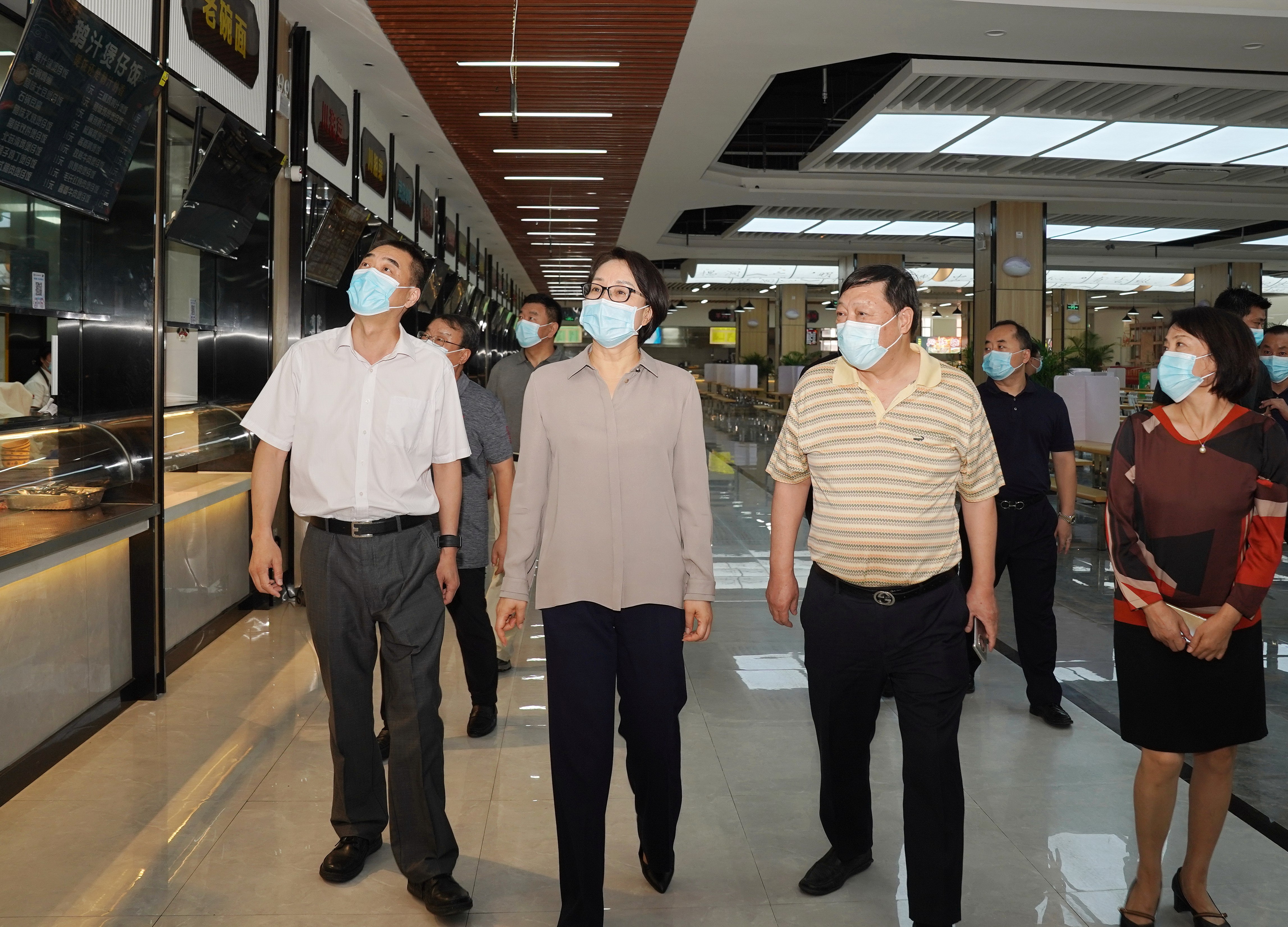 在学生生活区,李蓬一行实地考察了返校开学准备工作,走访查看了柳园学生宿舍9号楼、聚英园餐厅,深入了解进入宿舍前相关流程、餐厅菜品种类及就餐秩序等情况。李蓬强调,要严格日常管理,强化食堂、宿舍、实验室等重点场所卫生清洁消毒和通风换气,毫不松懈抓好食品安全工作,保障疫情期间学生饮食安全。