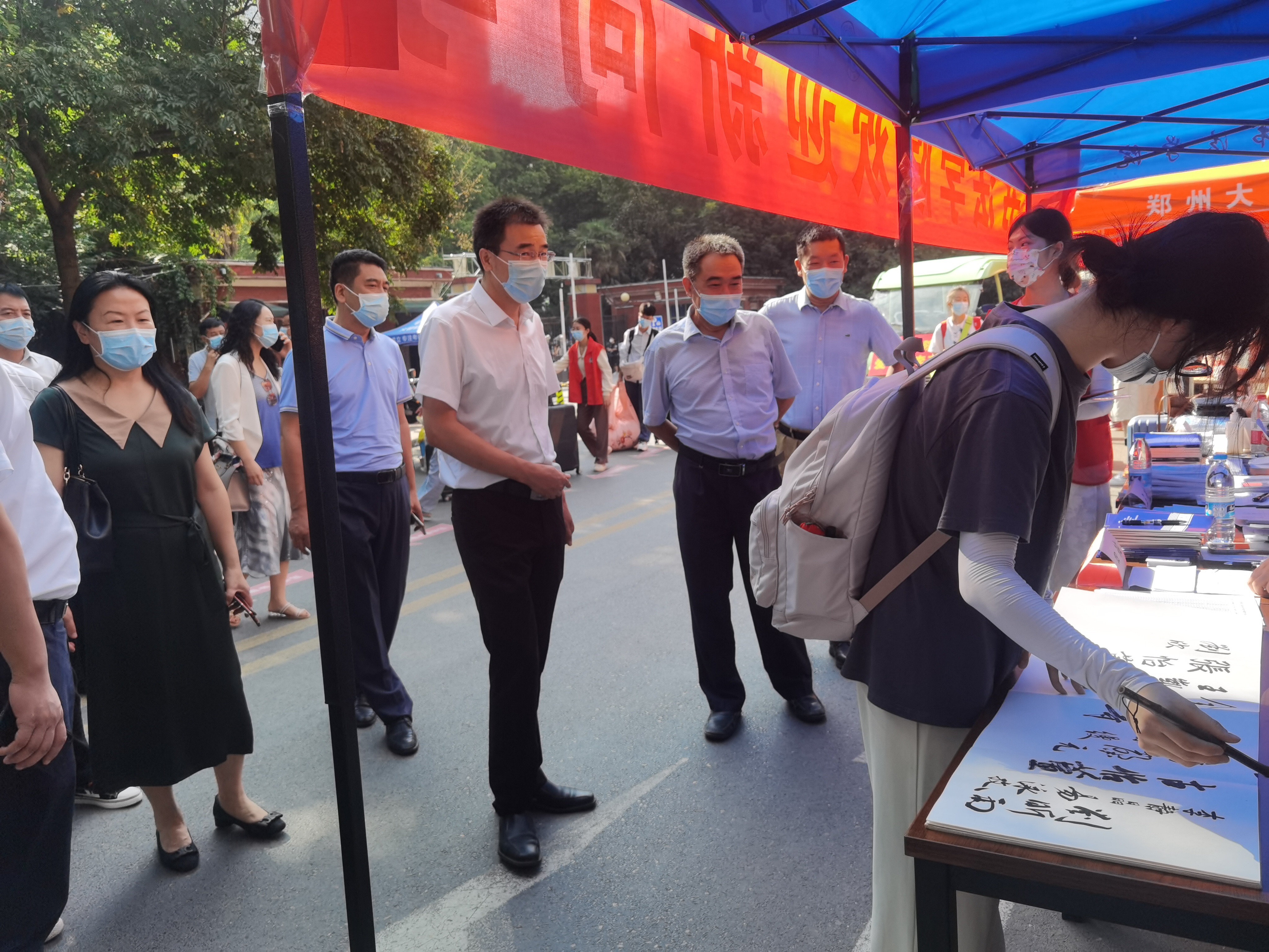 “已经报到多少人?”校领导先后到各个校门、院系迎新站、党员服务站等实地查看,了解招生情况、报到进展、住宿安排等,及时协调解决实际困难,并与师生合影留念。在医学院迎新点,校长李蓬院士询问新生报考专业、高考分数、是否喜欢医学等,希望同学们弘扬伟大抗疫精神,夯实医学基本功,提高临床技能,成为栋梁之才,为护佑人民健康努力奋斗。在综合服务办事服务大厅,李蓬强调要不断增强服务意识,提升信息化水平,打造有温度有质感的服务,让每位新生都感受到学校的温暖。