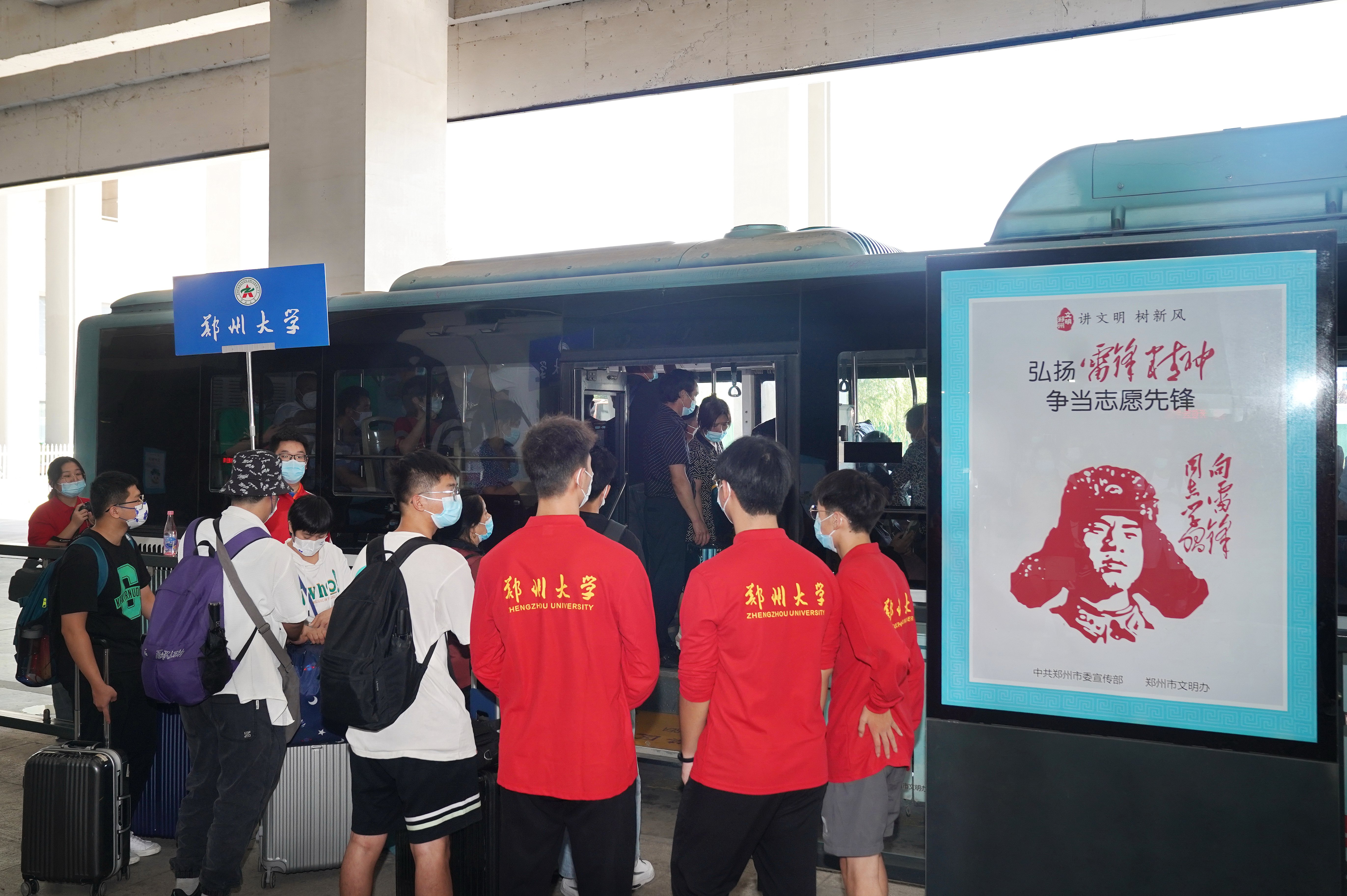 为了消除家长无法同新生一起入校的担忧,各部门尽职尽责、通力协作,为新生的“郑大第一天”保驾护航。学校在火车站设置迎新接站点,200名志愿者、30辆迎新专用车点对点接送新生和家长;校门外规划专门停车区域,执勤交警和保卫人员全力疏导交通,维持秩序;校门口扫码验码、体温监测、行李消杀、口罩更换等流程快速顺畅,守护校园防控第一道防线;校园内1000余名“多彩马甲”来往穿梭、答疑指路、搬运行李,带领新生到各院系迎新点有序报到、做核酸检测后入住宿舍;60余个党员迎新服务站分布在校园各处,2300余名党员师生投身迎新一线,开展志愿服务,让新生充分感受到党的温暖和关怀;300余名辅导员、班主任和心理咨询专家24小时在岗值守,及时回应诉求、解决问题、开展帮扶;2600余名后勤人员昼夜奋战,为新生提供餐饮、清洁、住宿、洗浴、快递、购物等全方位保障。学校还设置迎新联合咨询点,提供“只跑一次”咨询服务,打通迎新“最后一公里”;开设“绿色通道”,帮助家庭经济困难新生办理助学贷款,确保入学无忧。