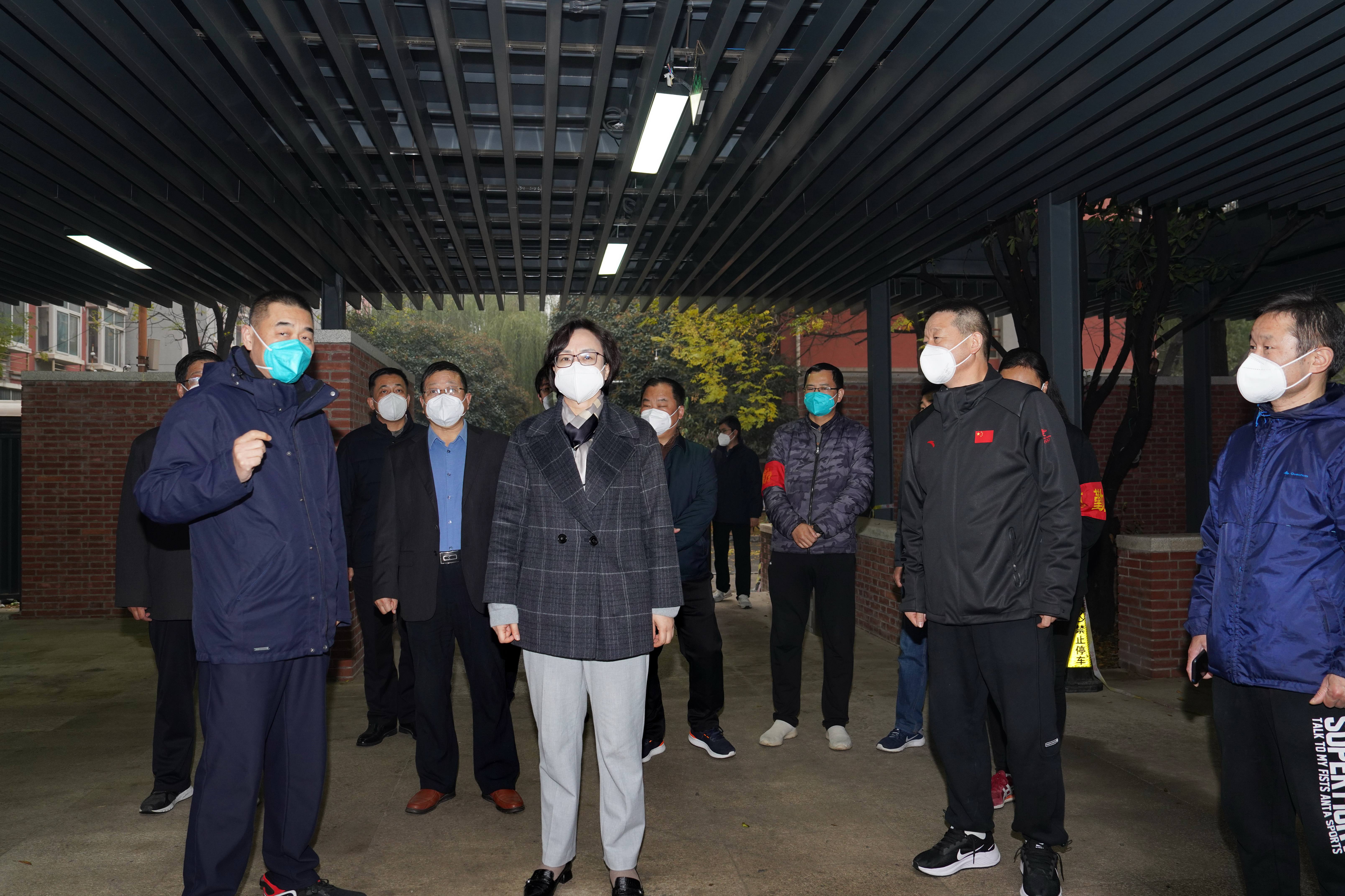 李蓬一行首先到四个社区查看社区运行情况。在柳园社区,李蓬一行查看了柳园8号楼、9号楼学生宿舍以及社区办公场所,听取社区负责同志关于社区运行情况的汇报,详细询问楼长、楼层长工作与生活情况,并代表学校对社区全体工作人员表示慰问与感谢。她指出,柳园社区是全校入住学生规模最大的社区,社区全体工作人员要顶住压力、克服困难,在做好社区各项工作的同时,也要强化自我防护,保持身体健康。