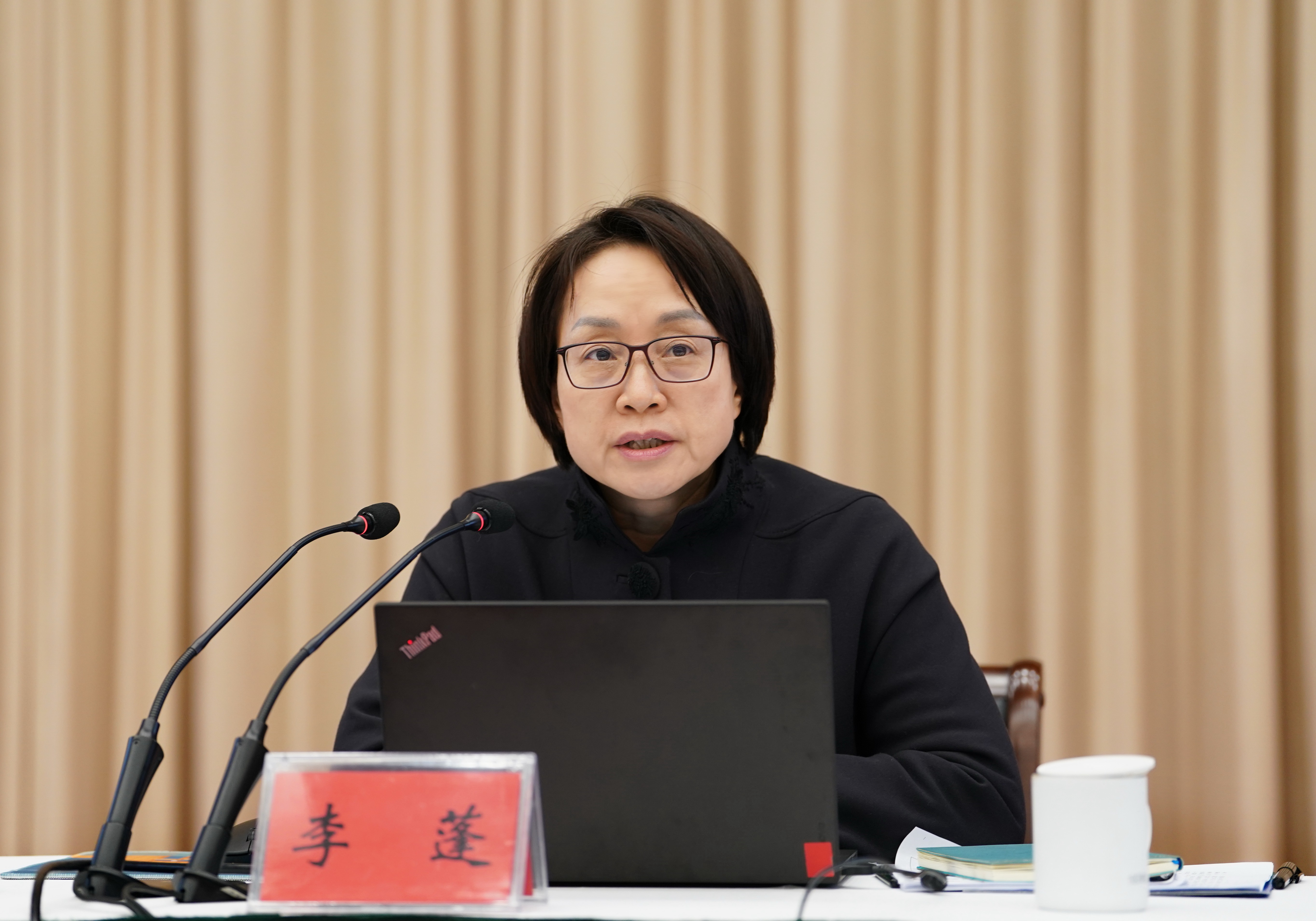 校长李蓬院士讲话。她以“改革创新谋发展 求真实干开新局”为题,从认清形势、找准差距,勠力同心、守正创新,明确重点、求真实干三方面对2023年工作提出思考和谋划。她指出,深入学习贯彻党的二十大精神和2023年全国教育工作会议要求,全面贯彻党的教育方针,落实立德树人根本任务,扎实推进一流大学建设,是对办好人民满意的教育最直接最真切回应。她表示,对照“双一流”建设监测指标体系和第五轮学科评估指标体系要求,学校在人才培养、师资队伍、创新能力等方面还存在不少差距与不足。她要求,学校要坚持目标导向、问题导向,站位“双一流”第二建设周期,牢牢把握“调结构、建机制、聚优势、提效能”这一主线,围绕“一流学科与平台建设工程、一流专业与研究生教育质量提升工程、前沿研究与服务国家重大战略需求工程、人才汇聚与师资队伍效能提升工程、体制机制创新与治理能力提升工程、服务提升与民生改善工程”六大中心任务,努力实现“一流学科有突破、一流专业上水平、一流人才筑高地、一流管理出效能”四大核心目标,推动内涵建设与高质量发展,建设高水平研究型大学,支撑国家创新高地和全国重要人才中心建设。就做好2023年重点工作,她强调,一要加强党的全面领导,深化巡视整改,持续推进能力作风建设,提升一流建设引领作用;二要强化平台支撑,研究论证布局学科建设创新中心,构建动态调整、分赛道发展的学科体系,提升一流学科建设水平;三要强化质量导向,实施学分制改革试点,做好本科教育教学审核评估,提升卓越人才培养能力;四要强化引育机制,加大高层次人才引进力度,建立人才共享和分担机制,提升师资队伍全员能效;五要强化科研创新,实施PI制,强化有组织科研,推动重大科研任务攻关,提升服务国家战略水平;六要强化开放合作,深化部省合建,加强与5所部省合建高校对口合作,提升优质资源汇聚能力;七要强化开源节流,拓展资金来源,优化校内资源配置,提升办学资源使用效率;八要强化服务支撑,成立“双一流”建设战略咨询专家委员会,为一流大学建设提供全方位咨询指导,以昂扬的进取精神,助推一流大学建设驶上新赛道,获取新动能,取得新发展。