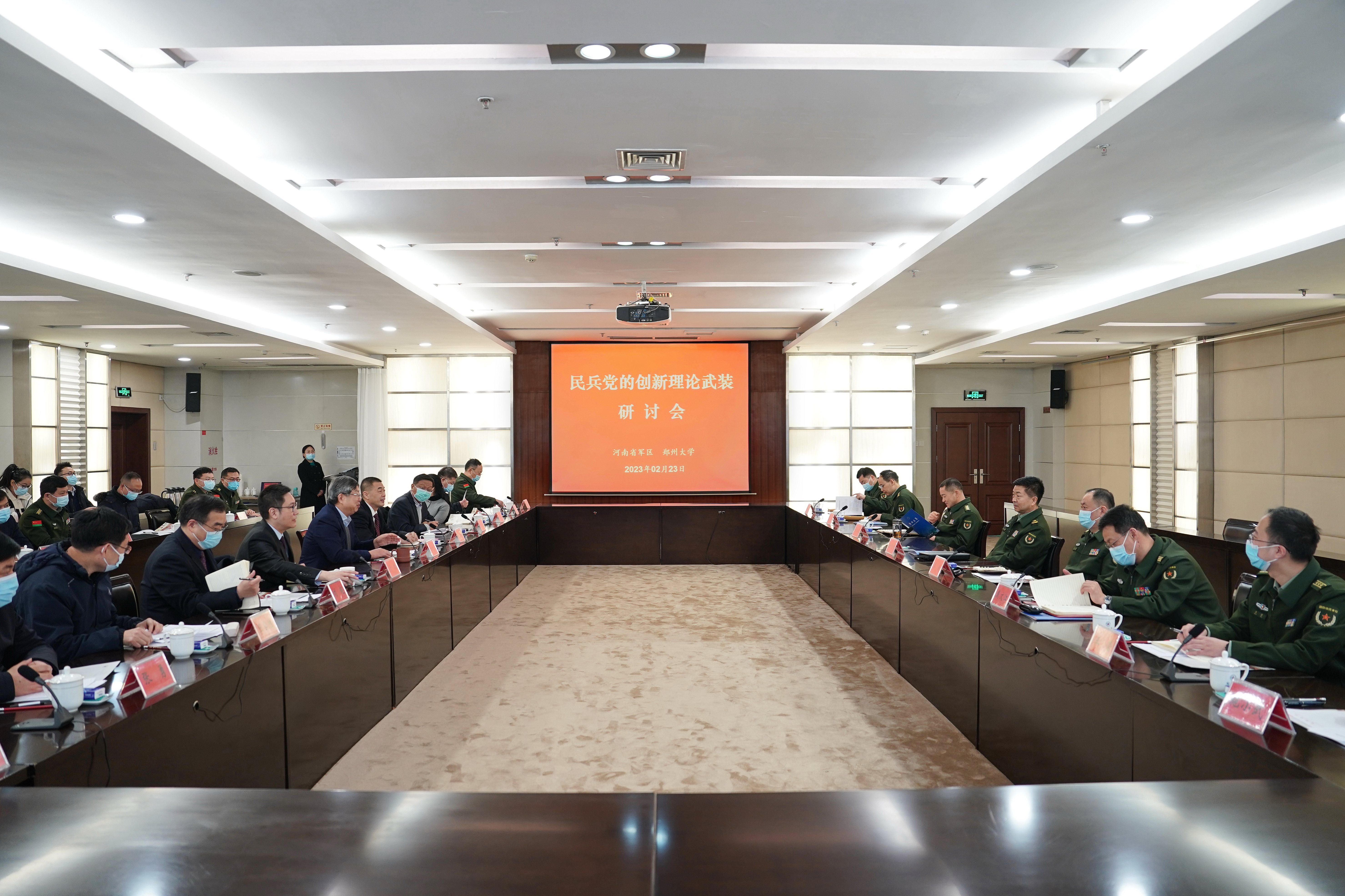 为深入学习贯彻党的二十大精神,落实国务院、中央军委《国防动员建设“十四五”规划》,加强民兵党的创新理论武装工作,推动我省国防动员和后备力量建设高质量发展,2月23日,德赢AC米兰中国官方网站举办民兵党的创新理论武装研究院揭牌仪式暨民兵党的创新理论武装研讨会。省委常委、省军区少将政委徐元鸿,省政协副主席、校党委书记、中国工程院院士刘炯天,省军区动员局大校局长姜巍,郑州市委常委、郑州警备区大校政委白江民,省军区战备建设局大校副局长戴文江,校党委副书记吴宏阳出席,省军区政治工作局、中原区人民武装部负责人,校党委常委、宣传部部长厉励,学校党委办公室、人民武装部、社会科学处、马克思主义学院负责同志、师生代表参加活动。揭牌仪式由吴宏阳主持。