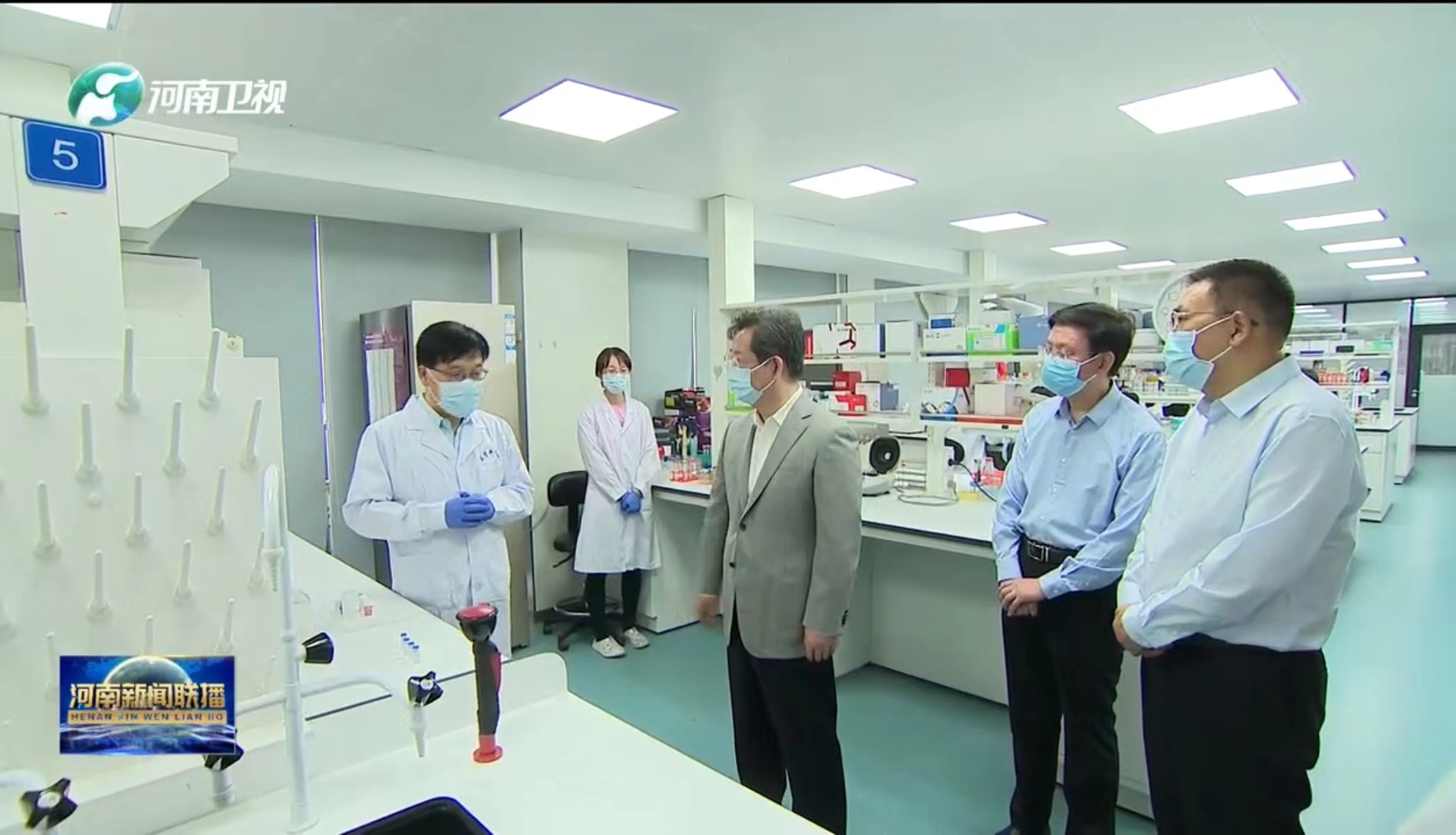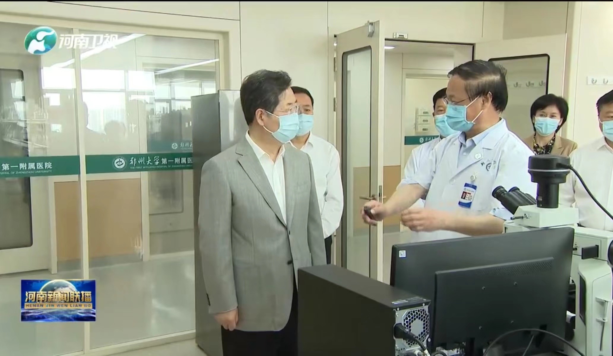 省领导孙守刚、陈星、宋争辉一同调研。校领导别荣海、董子钢参加调研。(图片来自河南新闻联播)