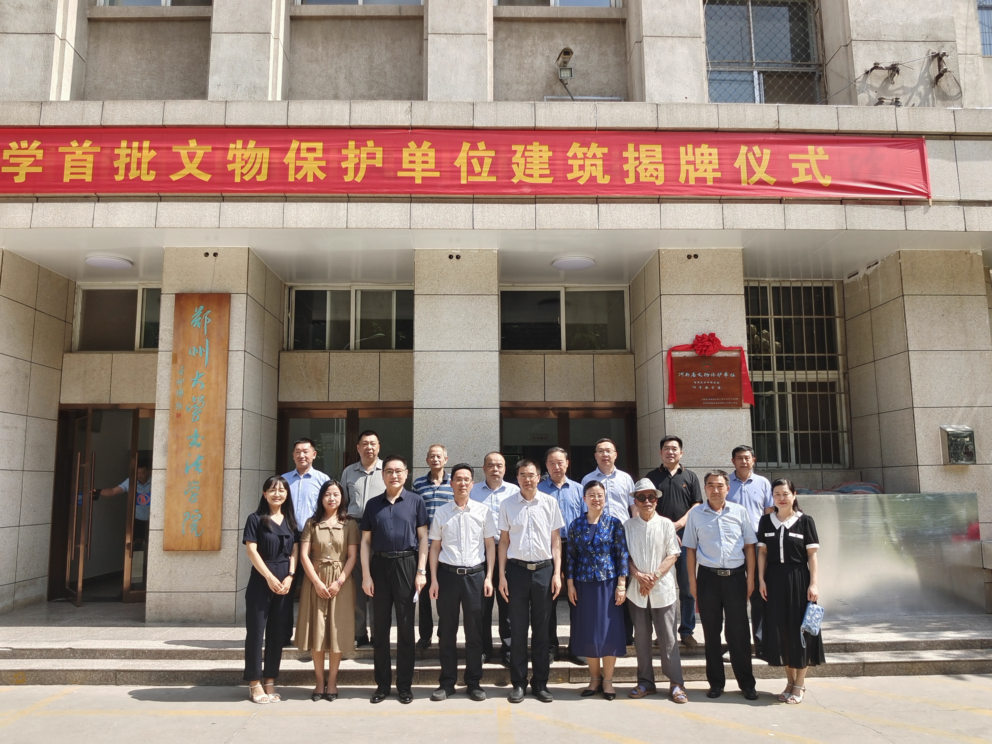 6月15日,德赢AC米兰中国官方网站首批文物保护单位建筑物揭牌仪式、《凝固的历史 厚重的记忆——老郑大建筑图记》新书发布暨校园文化建设座谈会在南校园举行。省文物局局长任伟、副校长单崇新出席,校党委常委、宣传部部长厉励及相关单位负责同志参加活动。揭牌仪式及座谈会由南校区综合管理中心负责同志主持。