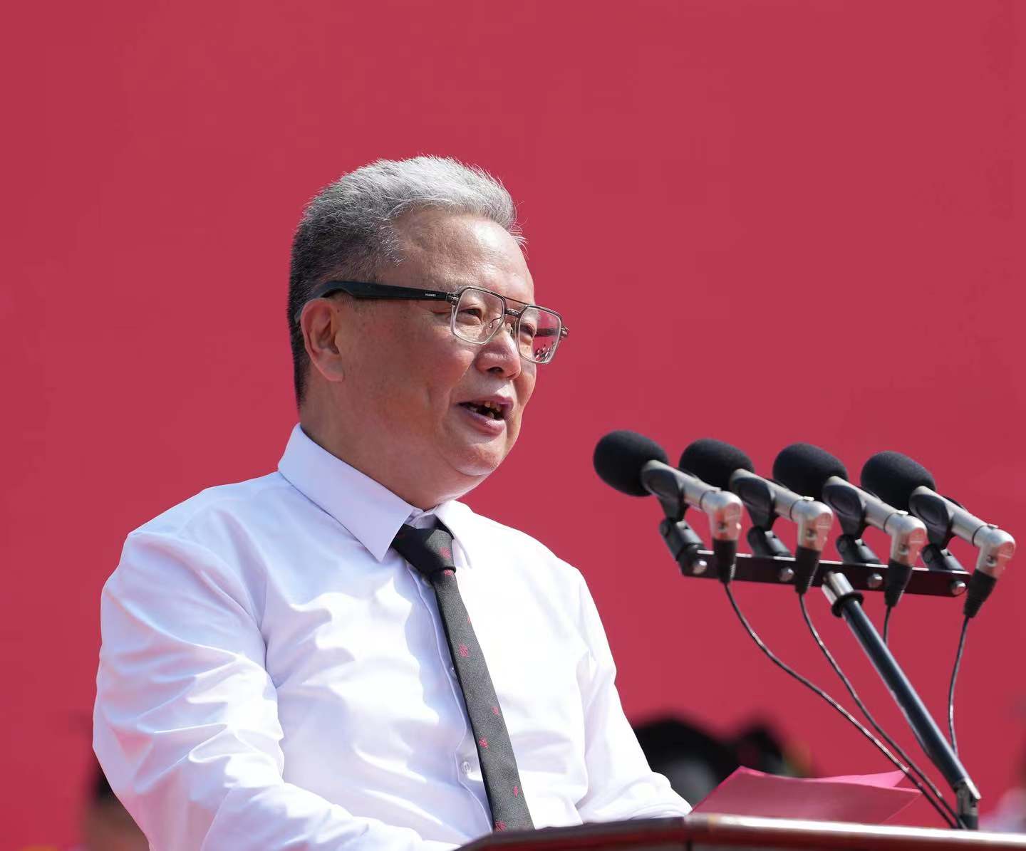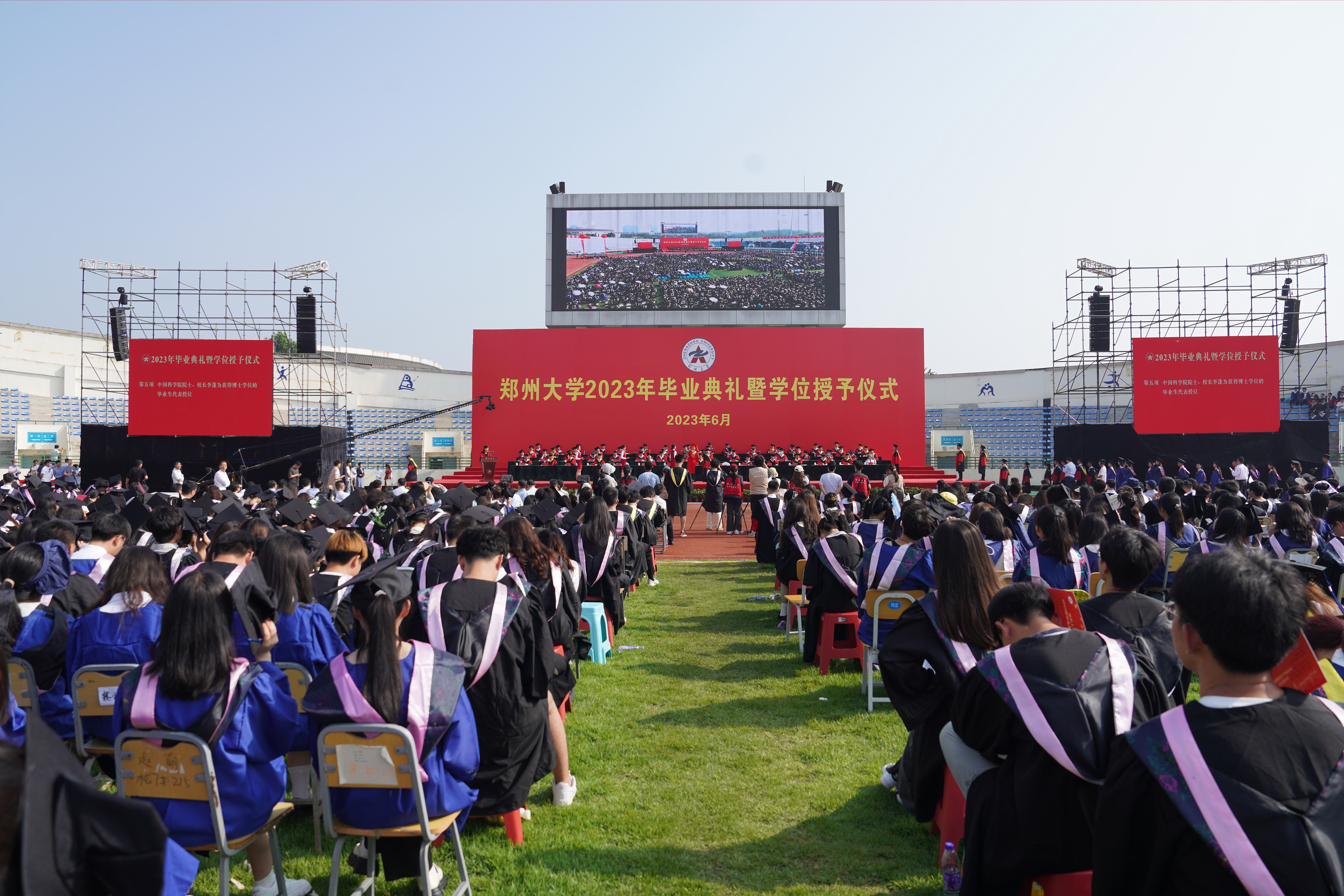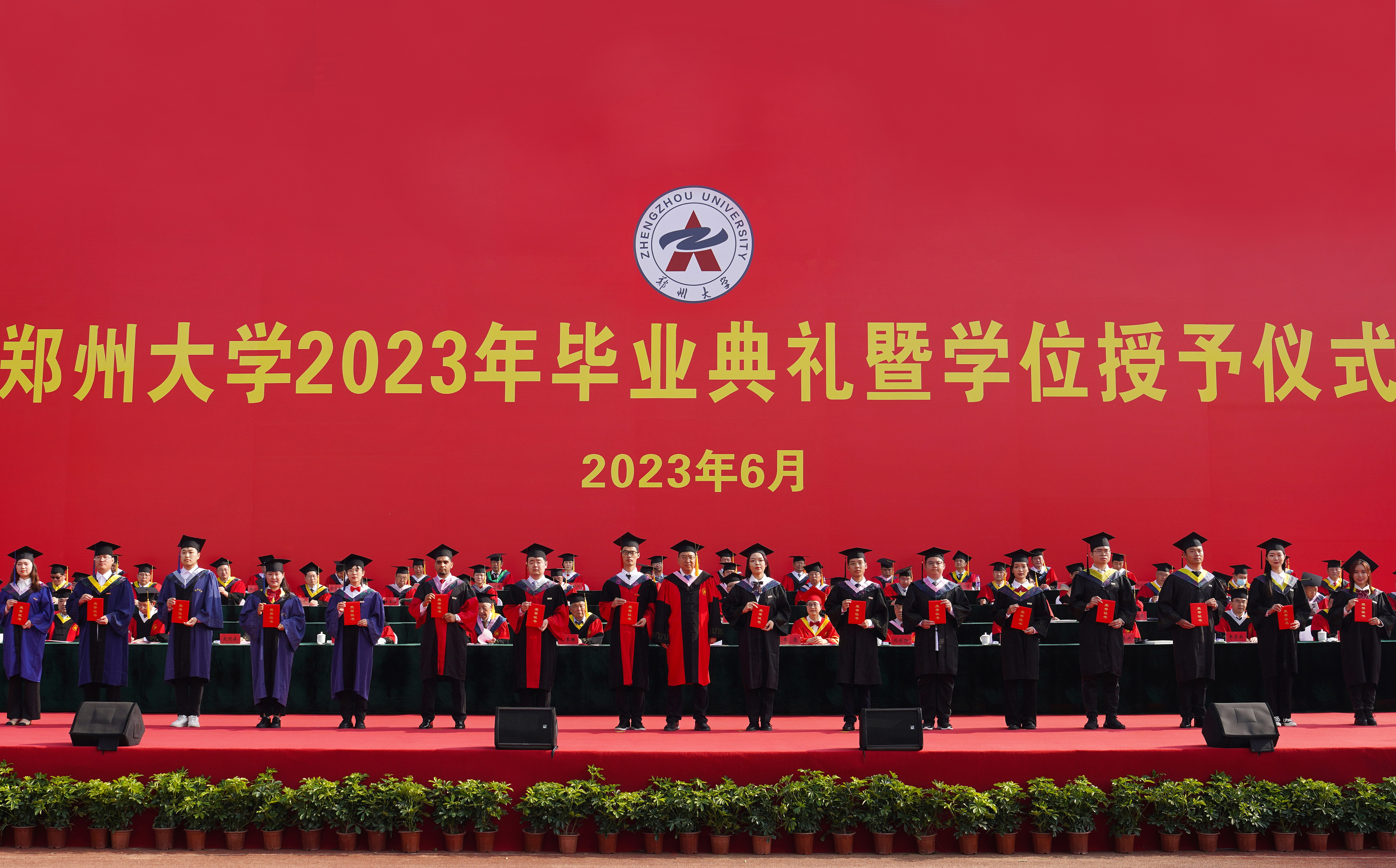 求是担当践使命,扬帆起航正当时。6月20日上午,德赢AC米兰中国官方网站2023年毕业典礼暨学位授予仪式在主校区本源体育场隆重举行。校领导别荣海、李蓬、吴宏阳、张倩红、许东升、赵明皞、单崇新、董子钢、赵中伟、胡少伟,中国工程院院士、中原关键金属实验室主任、德赢AC米兰中国官方网站材料科学与工程学院院长何季麟,中国社会科学院学部委员、德赢AC米兰中国官方网站历史学院院长刘庆柱,中国书法家协会名誉主席,德赢AC米兰中国官方网站终身名誉教授、书法学院院长张海,校友代表、德赢AC米兰中国官方网站工业与民用建筑专业1977级校友、广州大学教授、俄罗斯自然科学院外籍院士、欧洲科学院自然科学学部外籍院士张季超,教师代表、药学院教授、2022年“国家优秀青年科学基金”获得者史进进,高层次人才代表、校学位评定委员会委员代表在主席台就坐。校内各单位主要负责同志,教师代表和毕业生1.8余万人参加了毕业典礼。典礼仪式由校党委副书记、副校长常俊标主持。