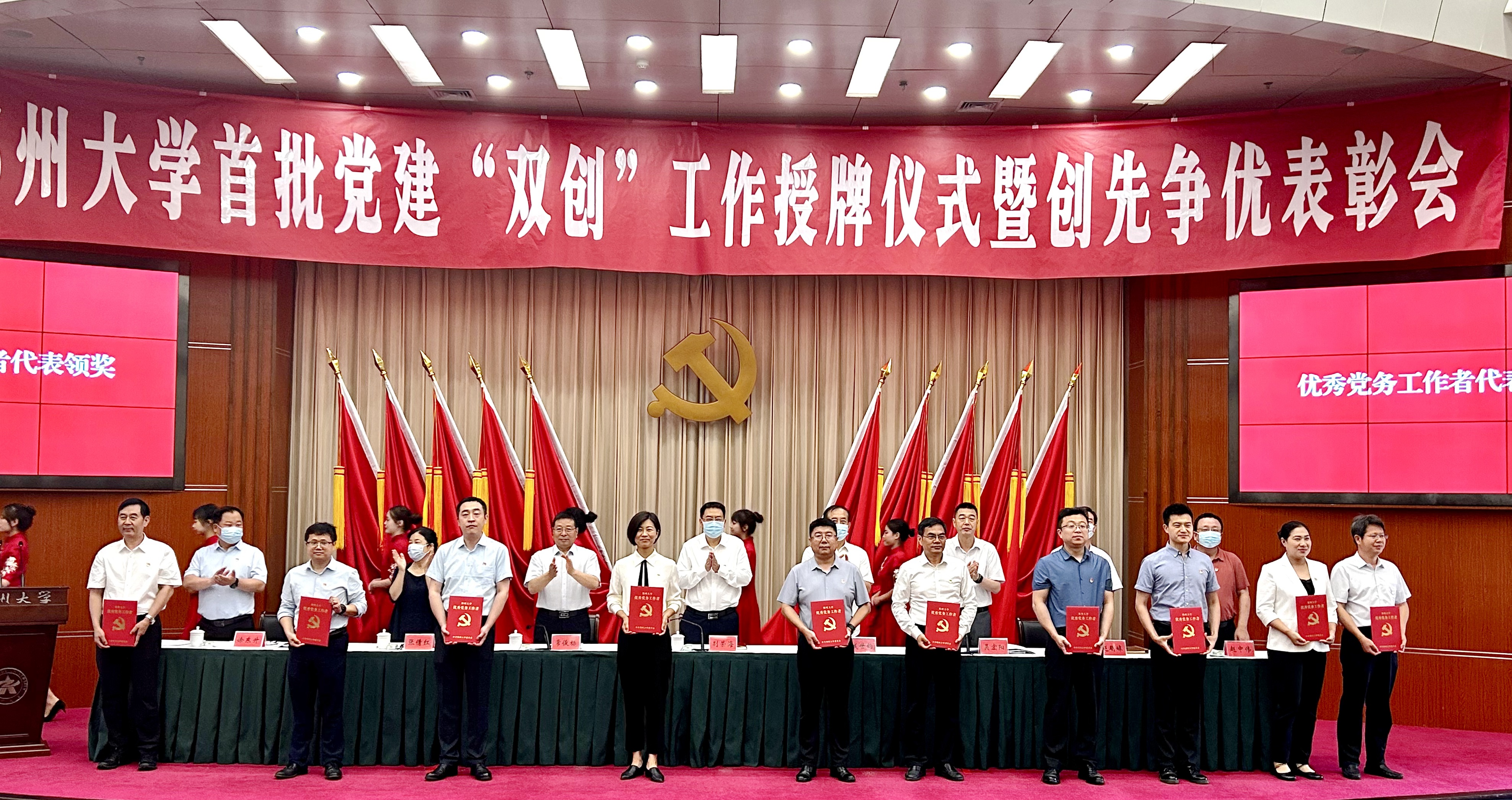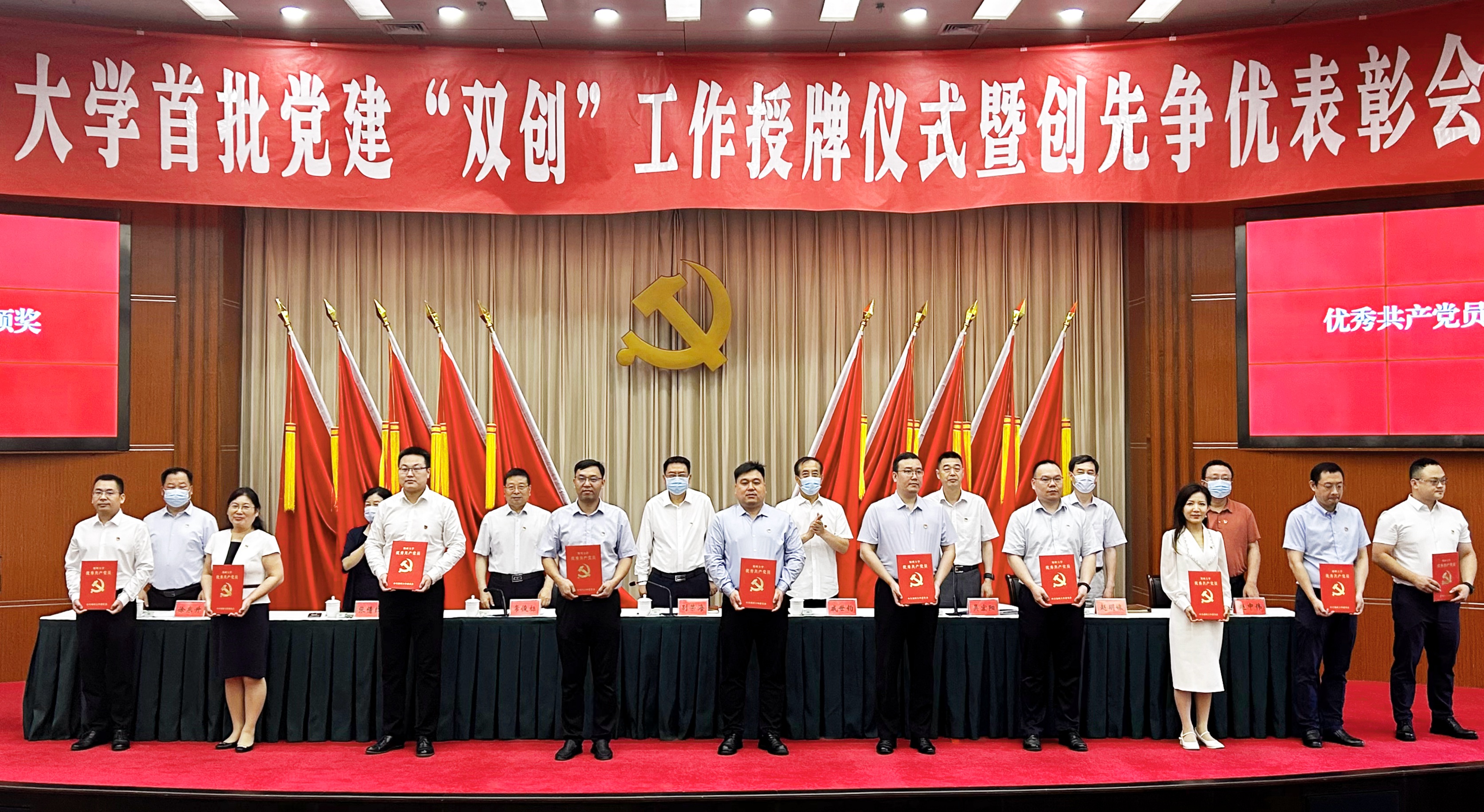 会上,校党委副书记、副校长常俊标宣读《关于公布党建工作“标杆单位”“样板支部”验收通过名单的通知》和《中共德赢AC米兰中国官方网站委员会关于表彰先进基层党组织、优秀共产党员、优秀党务工作者的决定》。与会校领导为受表彰的先进集体和先进个人代表颁发奖牌和证书。