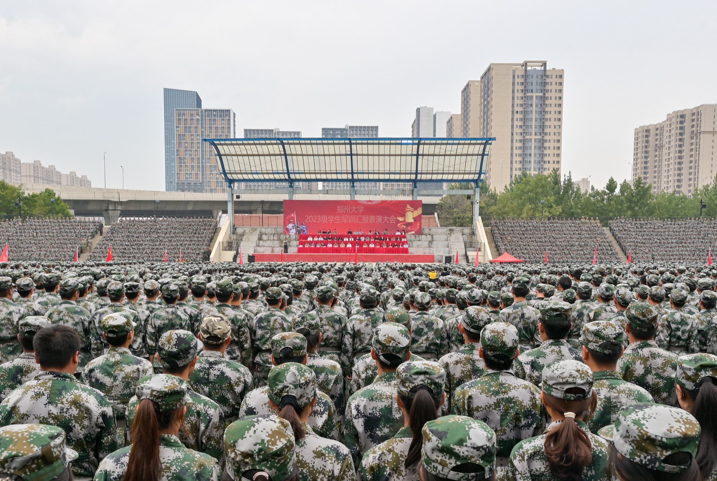 吴宏阳讲话。他代表学校向2023级新生军训圆满结束表示热烈祝贺,向承担此次军训任务的杨根思部队官兵致以崇高敬意,向配合执训的校国旗护卫队队员表示衷心感谢。他指出,军训是首修课、必修课,标准高、任务重,全体师生思想统一,步调一致,以优异的成绩完成了各项既定任务。他强调,军训是个大熔炉、大课堂,时间虽短,刻骨铭心。三周以来,“三个不相信”战斗精神和“特别能吃苦、特别能战斗、特别能攻关、特别能奉献”的载人航天精神汇聚郑大、交相辉映。同学们厚植了家国情怀,磨炼了意志品质,增强了斗争本领,立下了凌云壮志,以脚踏实地的行动为大学生活交上了第一份值得点赞的满意答卷。他对同学们提出三点希望:一要继续发扬我军光荣传统,保持坚韧意志,关心国防、热爱国防、建设国防、保卫国防,不负军训时光;二要传承红色基因、赓续红色血脉,争当强国先锋、复兴栋梁,不负伟大祖国;三是珍惜发展机遇,勇敢面对挑战,“求是担当”,“追求卓越”,“勿忘人民”,无愧伟大时代。