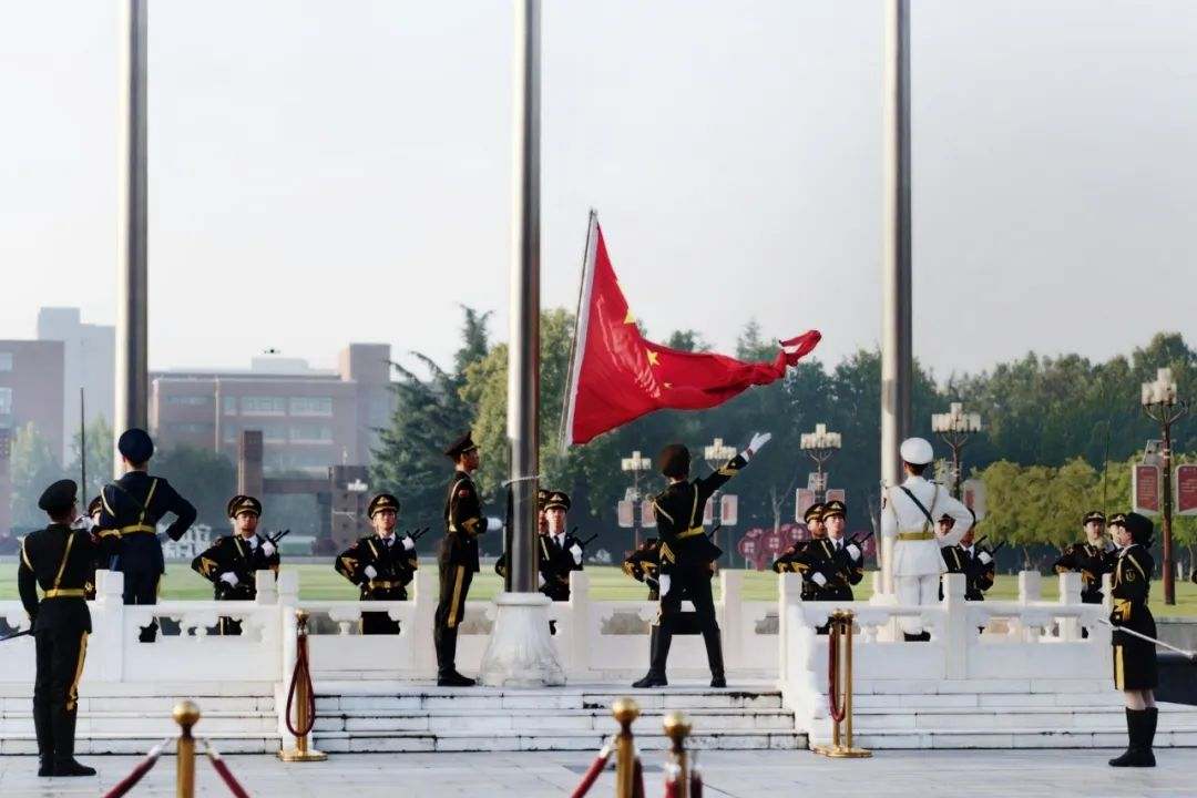 青春与国旗的碰撞,激荡起无穷的爱国浪花;情怀与沸血的交融,汇聚成坚定的赤诚信念。鲜红的五星红旗迎风招展,强烈的民族自豪感和使命感在师生心底油然而生,炽热的目光饱含着大家对祖国母亲深沉的热爱,对未来的美好憧憬与期待。全体郑大师生也将以更加坚定的信心、更加昂扬的斗志,求是担当、奋发有为、追求卓越,奋力推进世界一流大学建设,为实现中原崛起与中华民族伟大复兴作出新的更大的贡献。