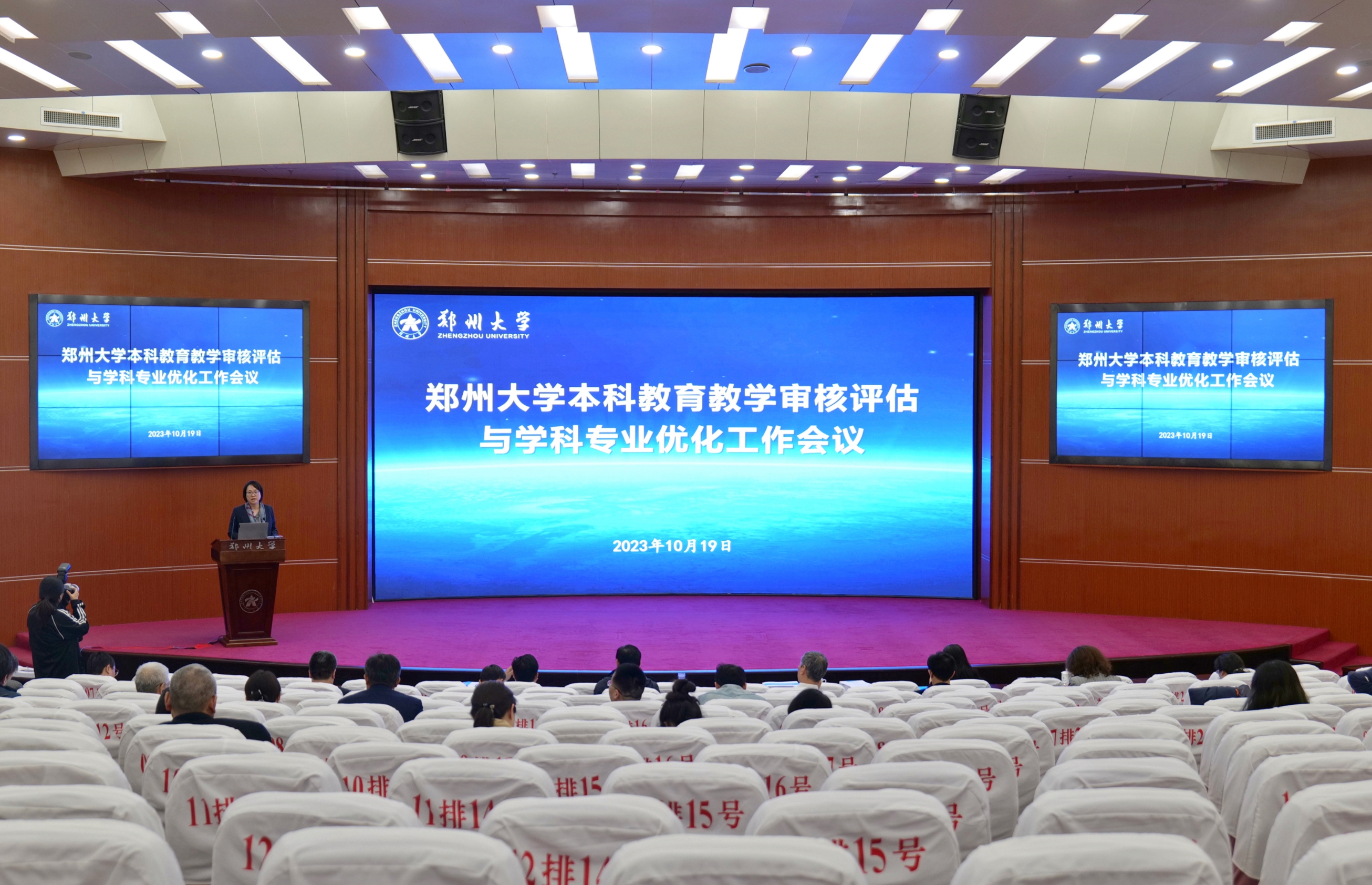 10月19日,德赢AC米兰中国官方网站召开本科教育教学审核评估与学科专业优化工作会议。校领导别荣海、李蓬、张倩红、胡少伟、董子钢出席会议,相关部门负责同志和审核评估工作联络员,各本科教学学院院长、教学副院长和审核评估工作联络员,评估专家指导组全体成员,校教学督导委员会委员,教务处、评估工作办公室、招生办公室、大学生就业创业指导服务中心全体人员参加会议。会议由副校长张倩红主持。