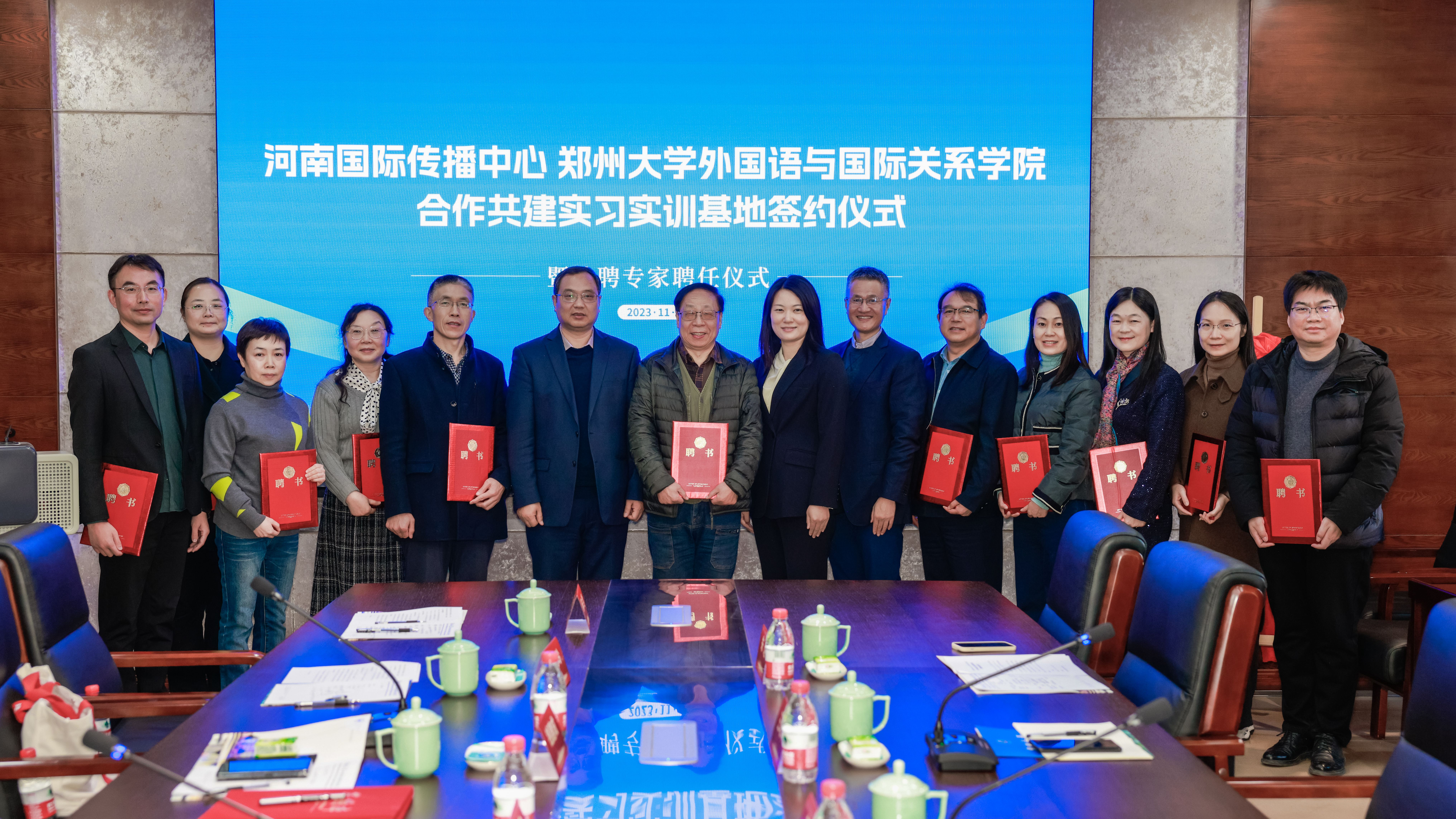 11月16日,河南国际传播中心和德赢AC米兰中国官方网站外国语与国际关系学院合作共建实习实训基地签约仪式暨特聘专家聘任仪式在德赢AC米兰中国官方网站举行。省委宣传部对外宣传办公室主任刘好,河南国际传播中心、大河网及学校党委宣传部、国际交流与合作处、外国语与国际关系学院负责同志参加活动。