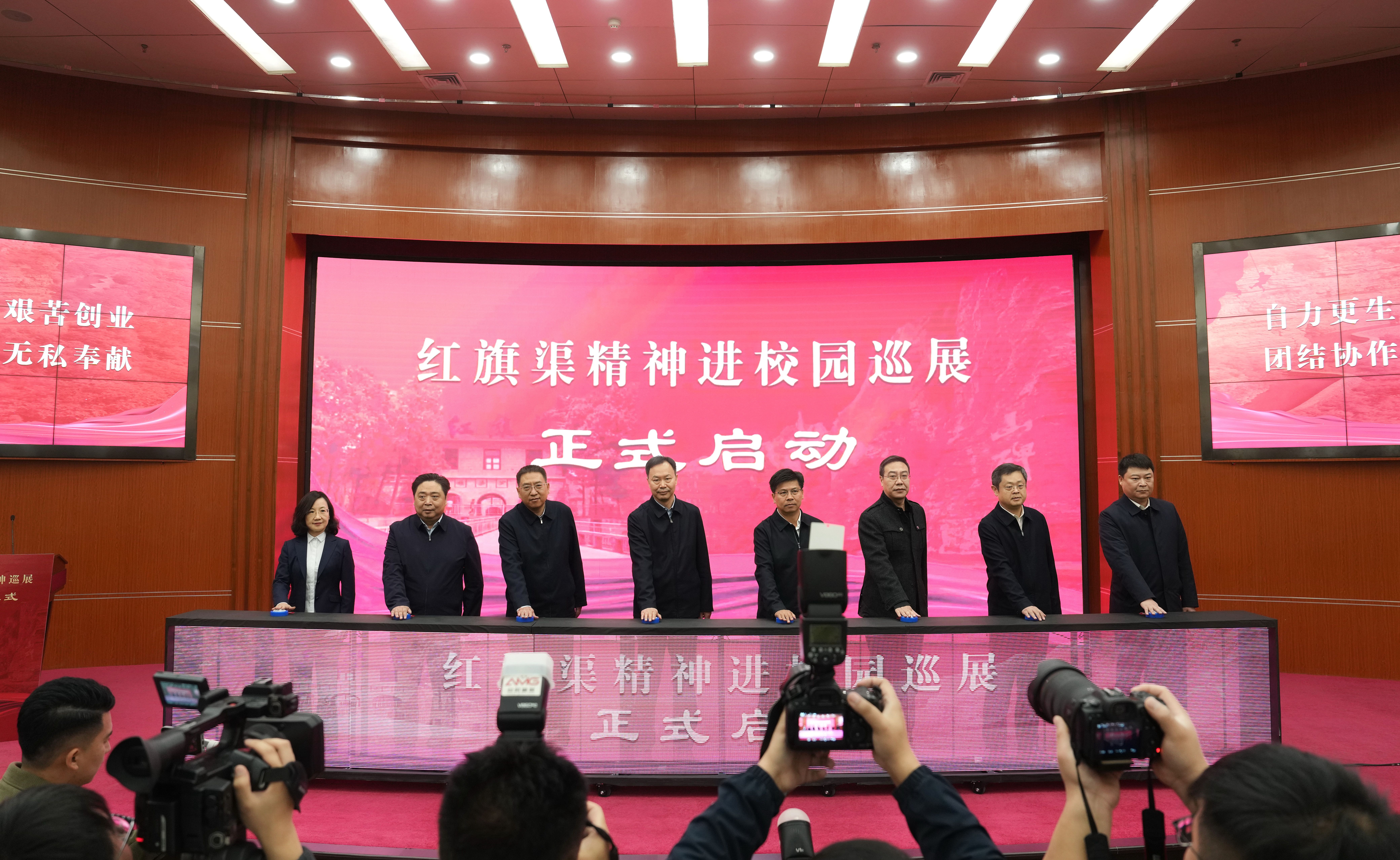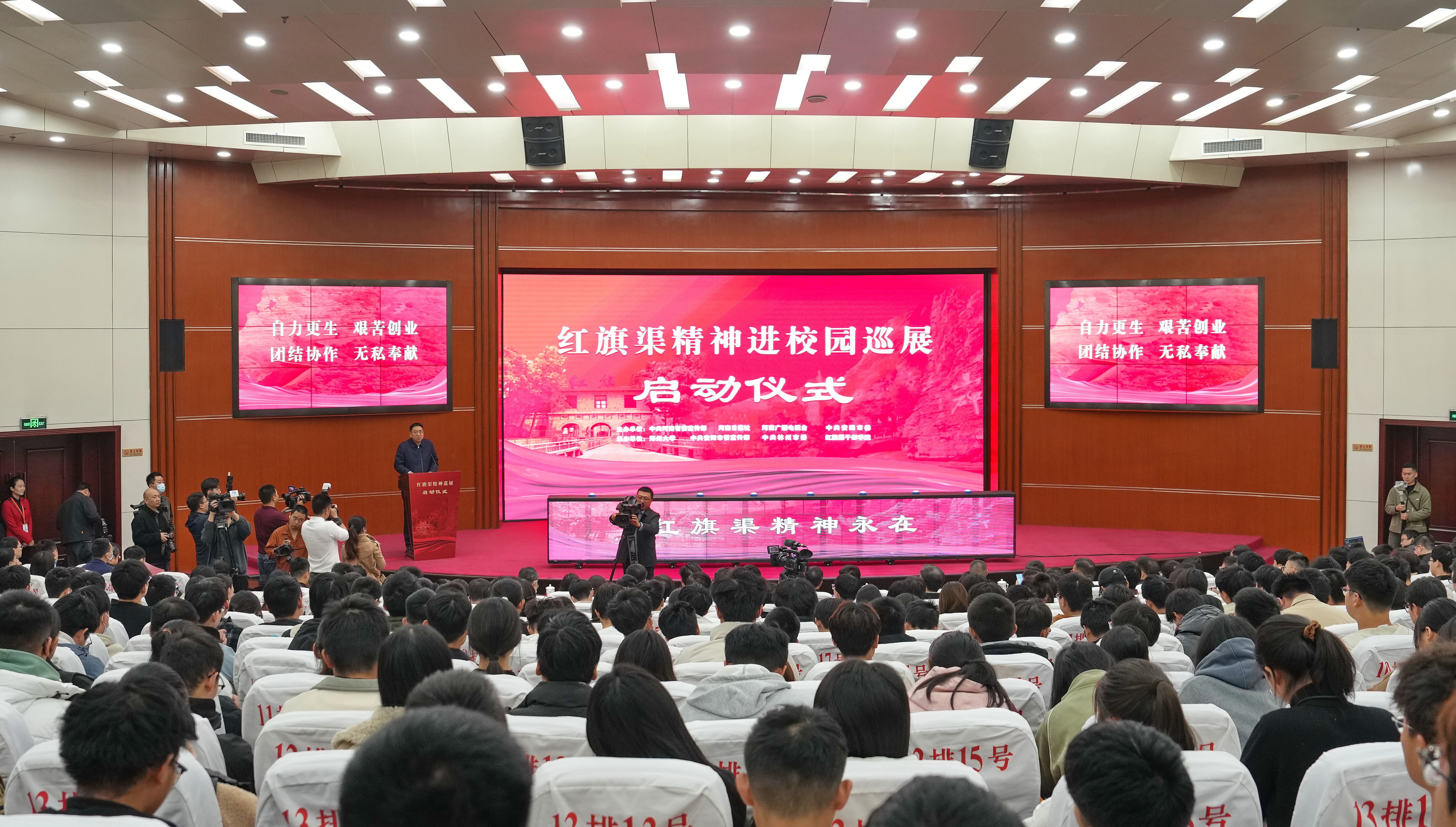 11月21日,“红旗渠精神进校园巡展”活动在德赢AC米兰中国官方网站正式启动。省委宣传部常务副部长黄玉国、安阳市委书记袁家健、河南日报社副总编辑张学文、河南广播电视台副总编辑郭士飞,德赢AC米兰中国官方网站党委书记别荣海、党委副书记吴宏阳出席,德赢AC米兰中国官方网站党委常委、宣传部部长厉励,林州市委书记孙建铎,红旗渠干部学院党委副书记、常务副院长刘芳,德赢AC米兰中国官方网站党委理论学习中心组全体成员及师生代表等500余人参加启动仪式。安阳市委常委、宣传部部长薛崇林主持启动仪式。