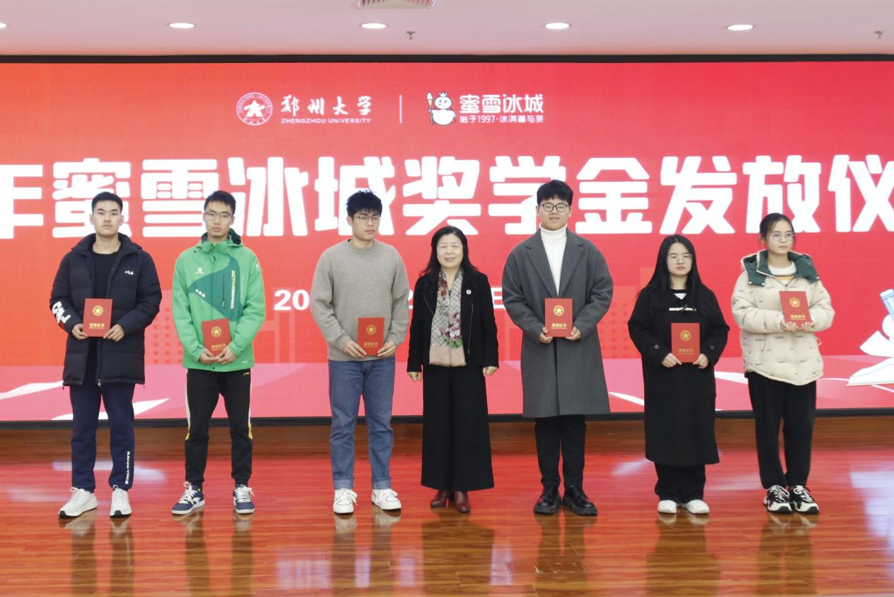 近日,2023年度“蜜雪冰城奖学金”发放仪式在主校区举行。蜜雪集团公共事务高级总监刘伟伟、德赢AC米兰中国官方网站副校长张倩红出席。党委学生工作部、对外联络办公室、新闻与传播学院、生命科学学院等相关单位负责人及获奖学生代表参加活动。